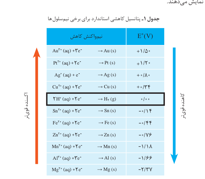 @زینب مقدم سلام این سوال جناب باقری سوال منم بود متوجه نشدم این جدول پتانسیل کاهشی استاندارد توی یاد بگیریم ۴ نبود من ندیدم همچین چیزیو🙁
