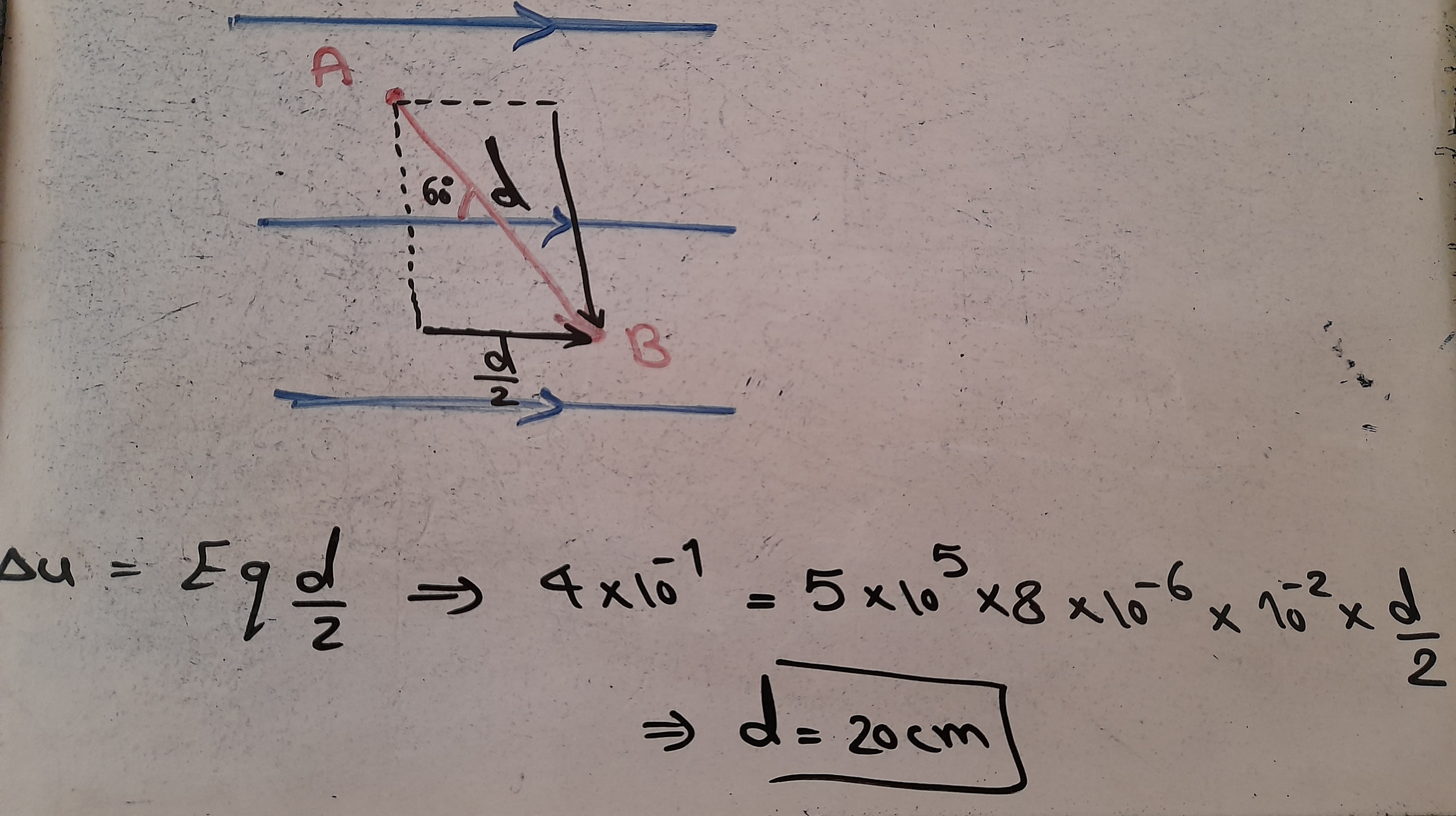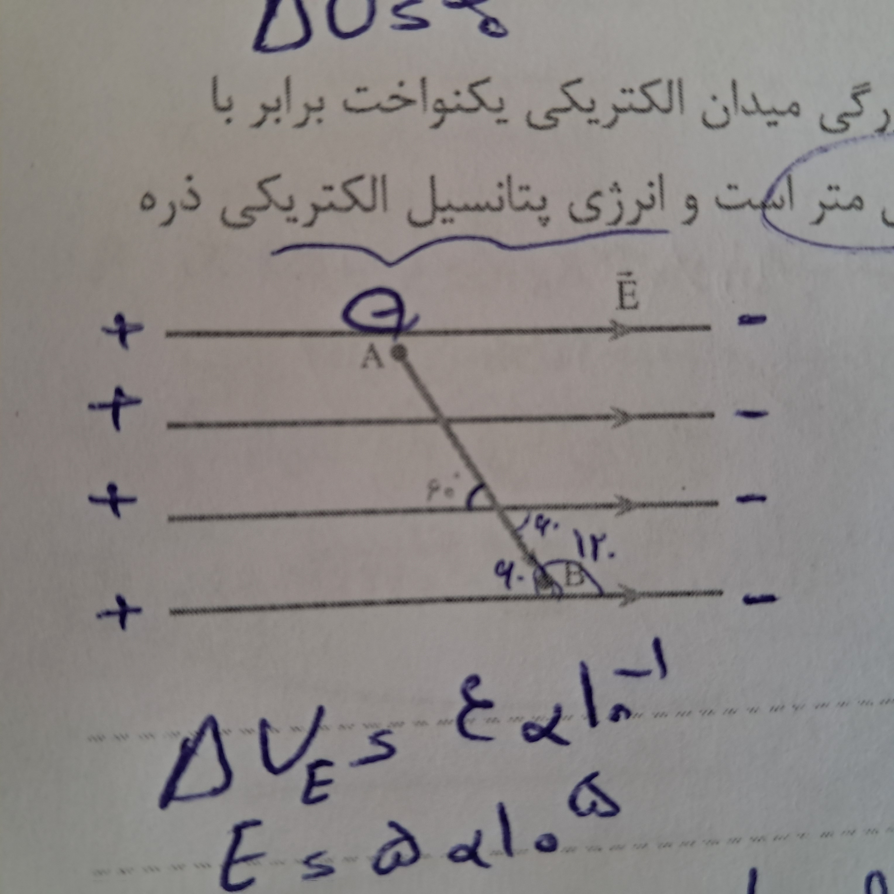 سلام روزتون بخیر ببخشید همیشه در تغییرات انرژی پتانسیل dموازی با خطوط رو در نظر میگیریم اونجا روی سوال چون وتر یا همون فاصلهAوBروخواسته بود ؟