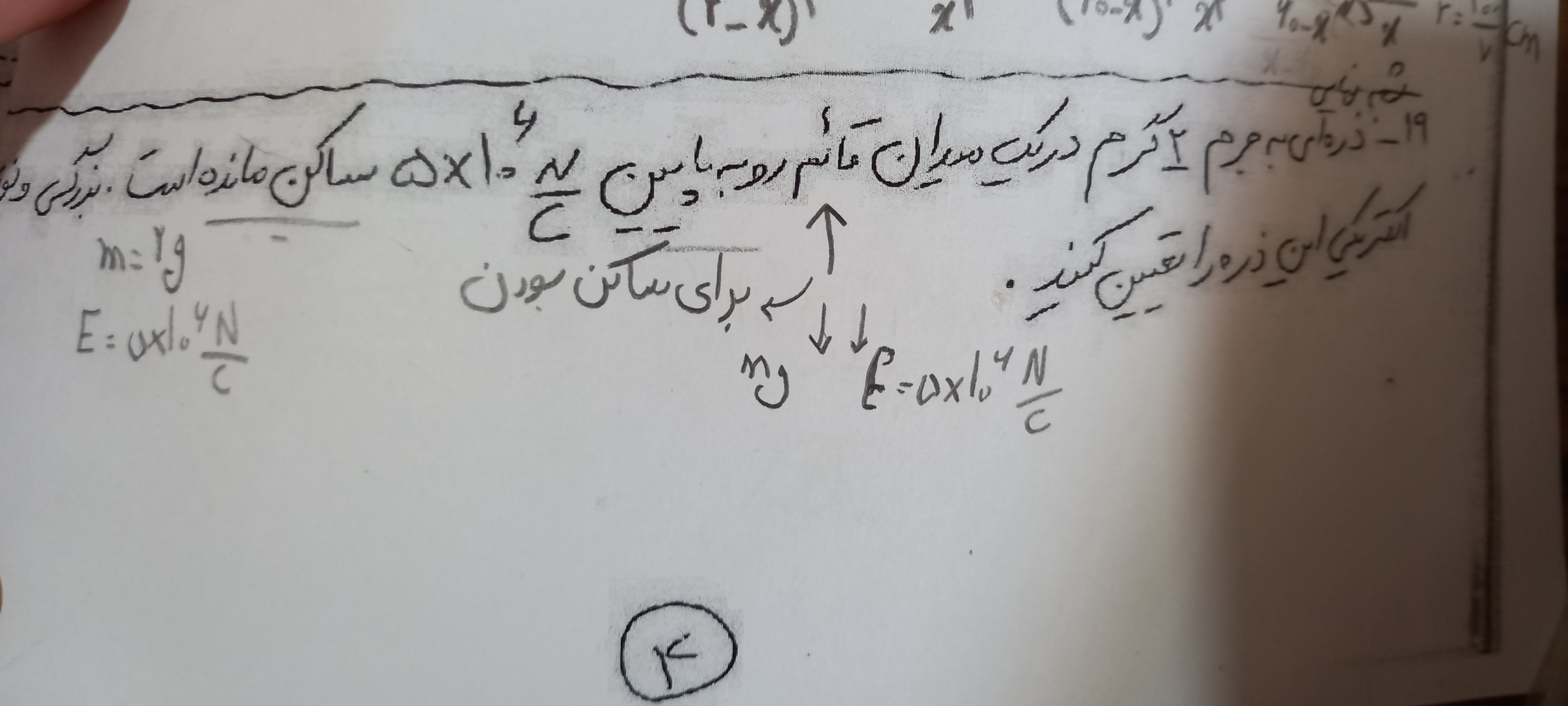 سلام بیین یه نیروی وزن داره به پایین وارد میشه پس یه نیرو به سمت بالا باید وارد بشه که تعادل برقرار باشه پس بار منفی داریم حالا باید نیروی حاصل از میدان رو با نیروی وزن برابر قرار بدی و مقدار بار رو بدست بیاری