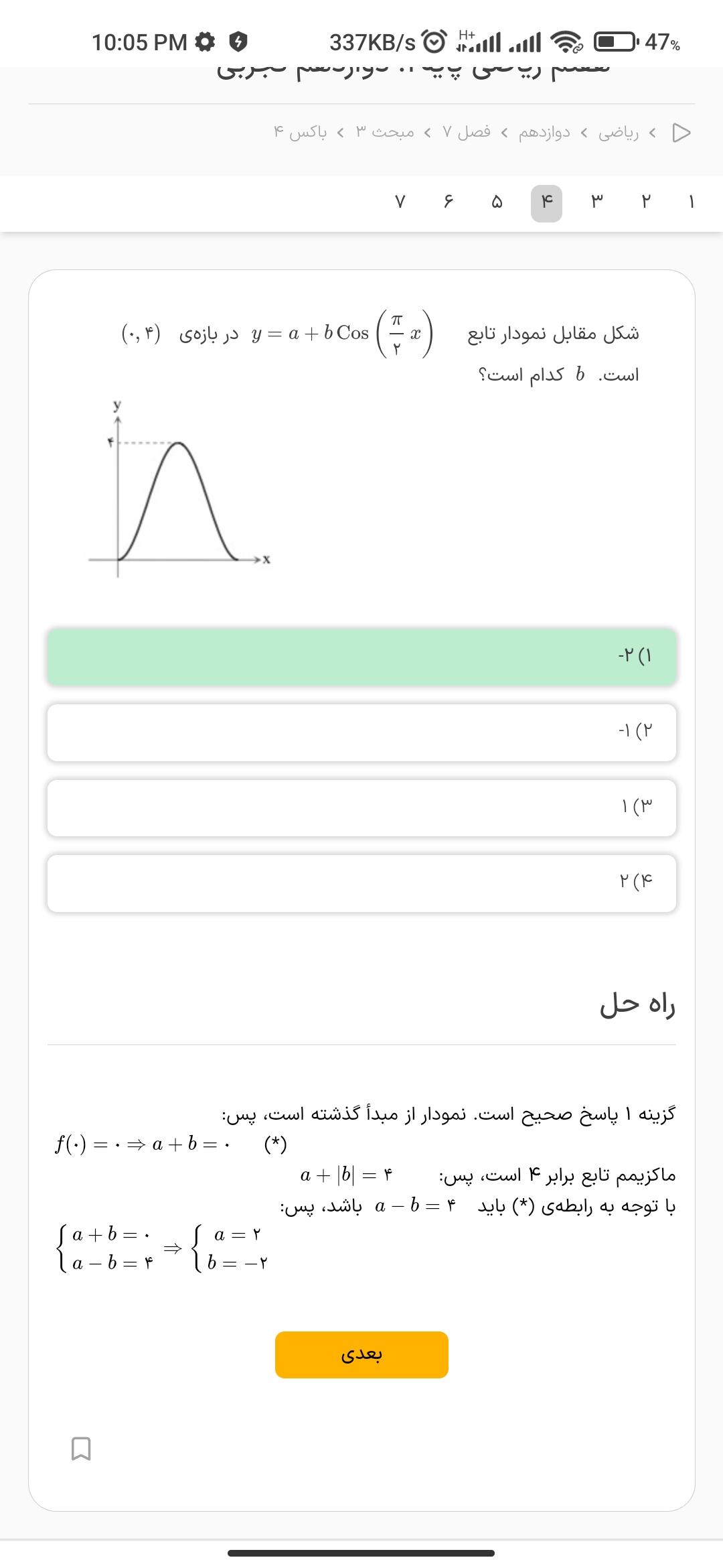 جواب چی یادگرفتی سوال اول : y=-1sinx سوال دوم : Max= 9 Min =-1