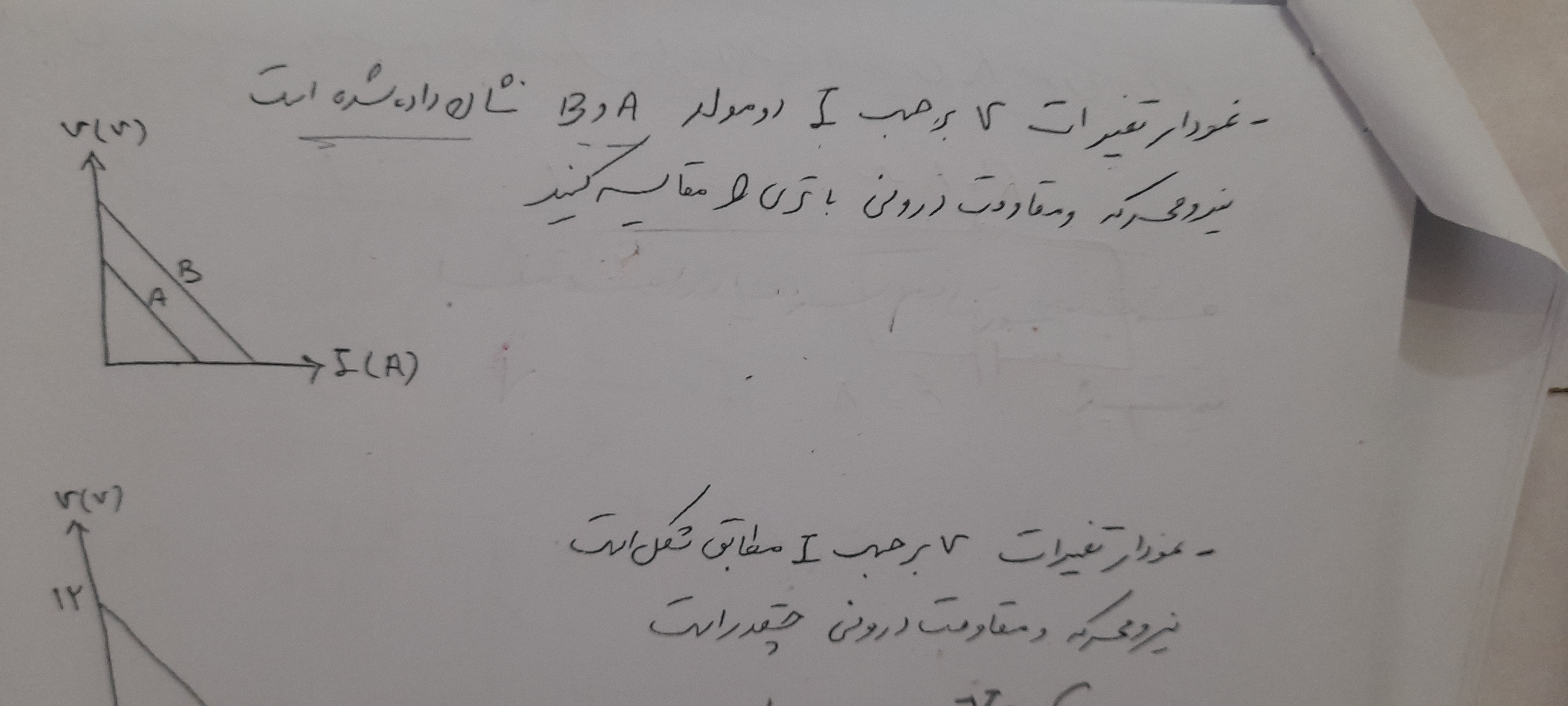 منظورتون رو متوجه نمیشم جریان که ثابت نیست فقط یه نسبتی بین جریان و ولتاژ داریم برای دو تا مولد مختلف و اینکه مقاومت درونی(r) رو از ما خواسته نه مقاومت خارجی(R) لطفا منظورتون رو بیشتر توضیح بدید با ویس