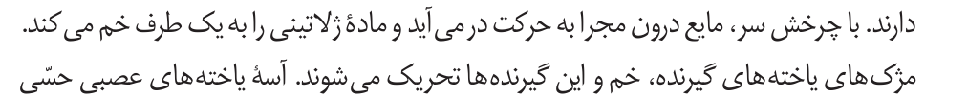 سلام وقتتون بخیر توی بخش حلزونی ، گیرنده های شنوایی بخشی از مژک هاشون درون ماده ژلاتینیه و قسمتی بیرون و در تماس با مایع اطرافه.