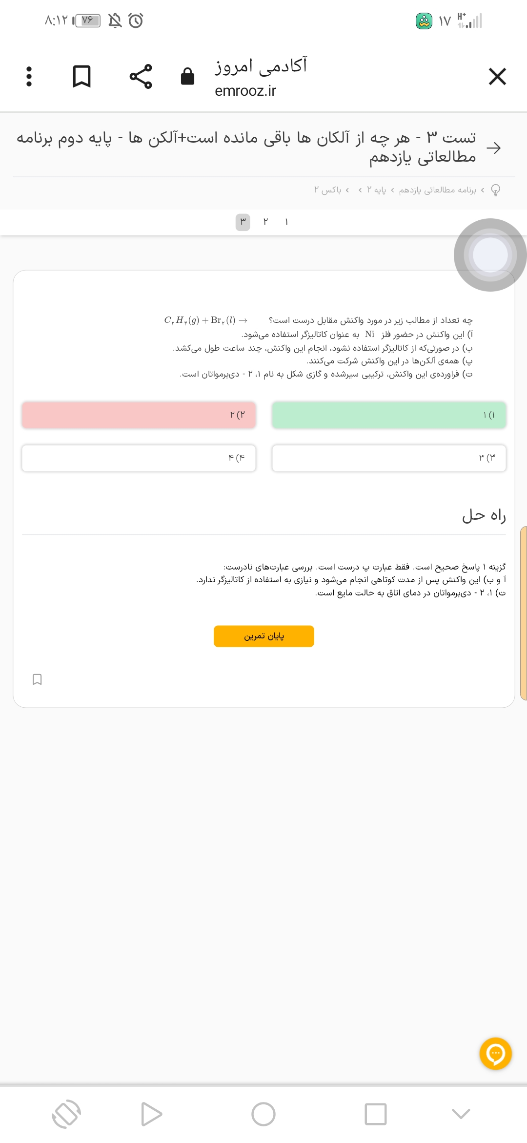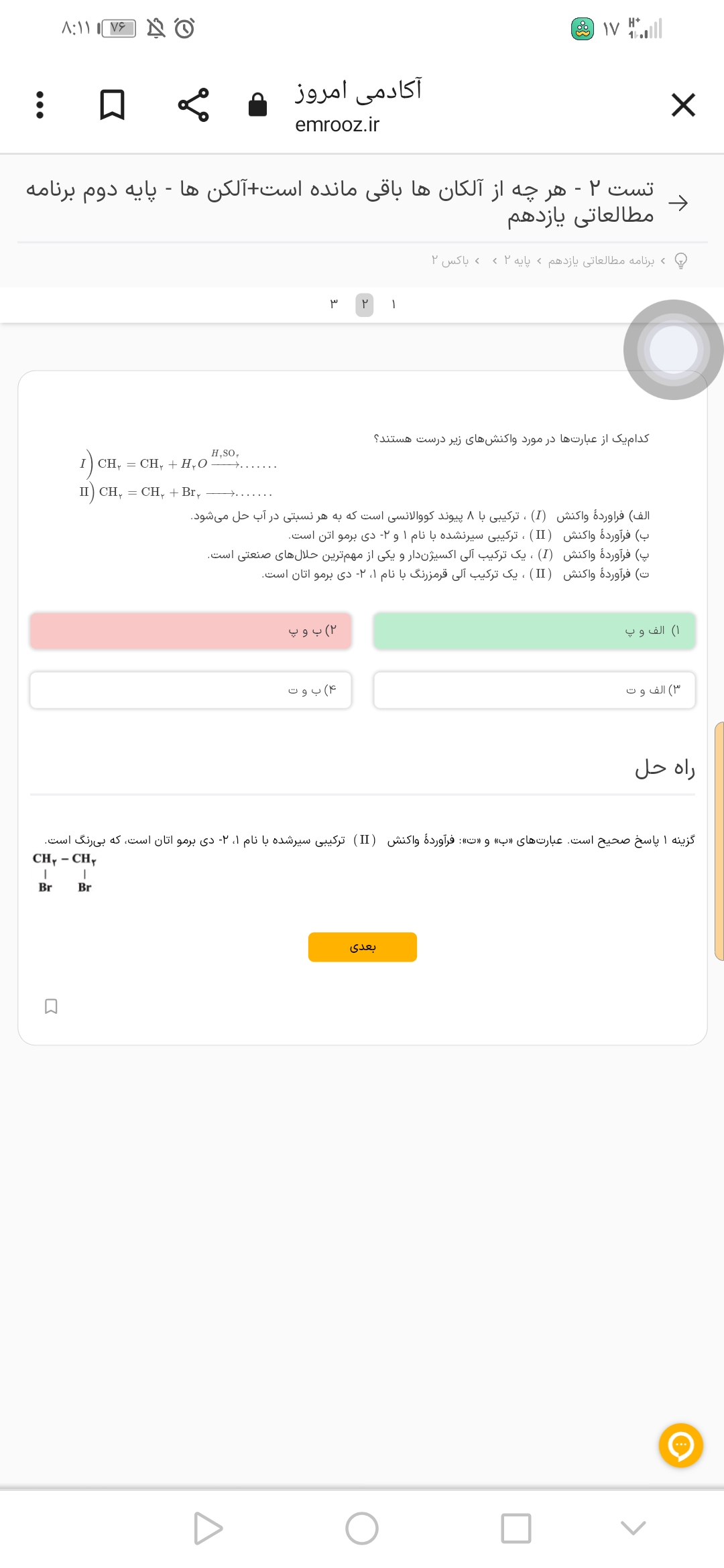 سلام میشه این تست رو توضیح بدید ینی چی همه آلکن ها در این واکنش شرکت می‌کنند؟