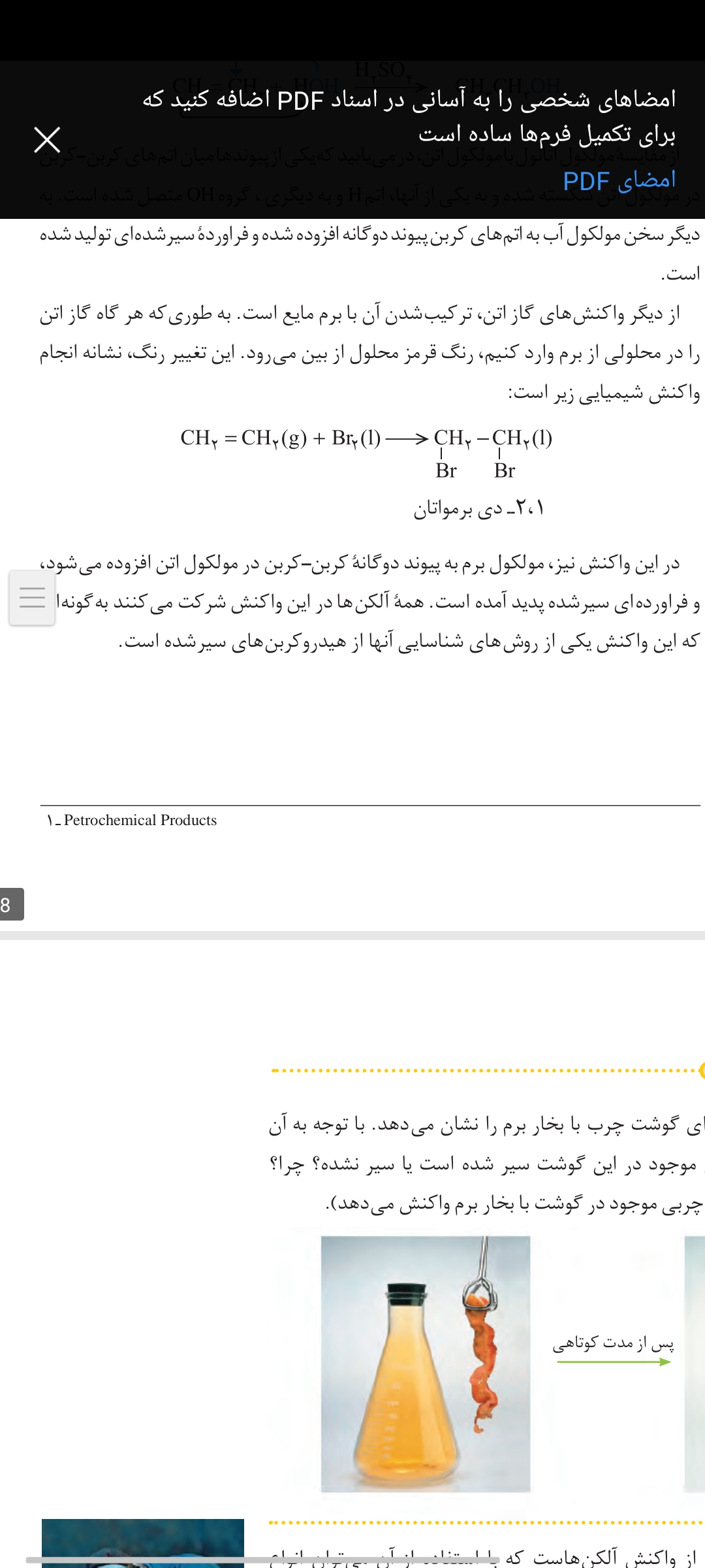 داره اشاره می‌کنه به واکنش صفحه ۴۰ کتاب درسی که آلکن‌ها با برم مایع واکنش می‌دن و پیوند دوگانه‌شون شکسته می‌شه
