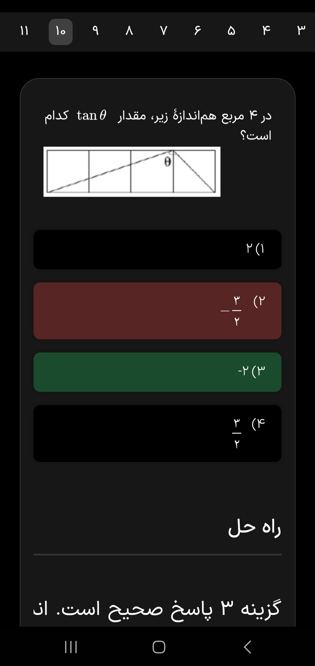 ببخشید توی تست 2 تمرین 1 چجوری تانژانت منفی دو شده ؟ چجوری اصلا نسبت مثلثاتی منفی در میاد؟