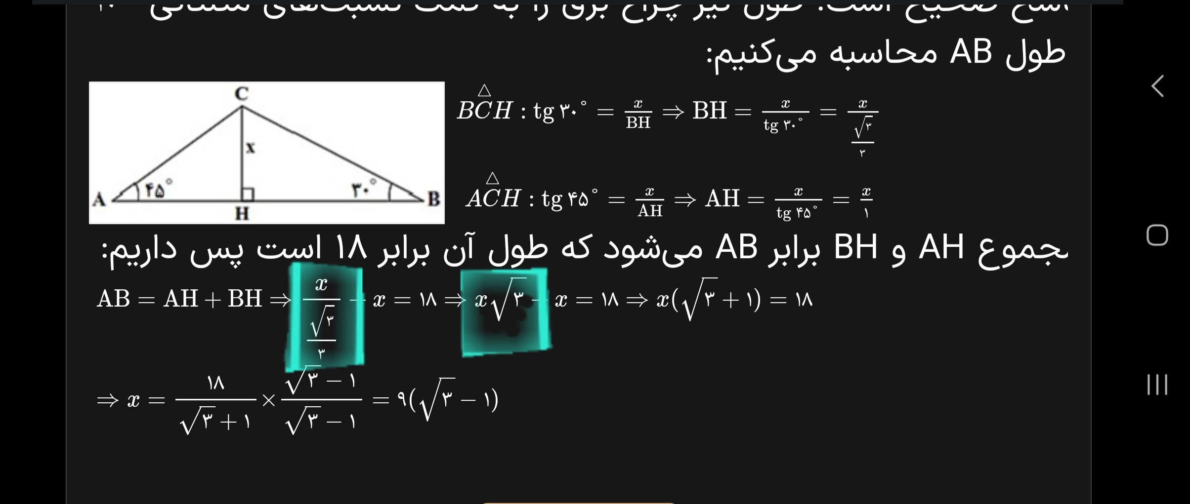 در ضمن میتونی اون رادیکال سه سوم که توی مخرج هست رو وارونه کنی بیاری بالا بعد میشه سه به روی رادیکال سه که برابر میشه با رادیکال سه متوجه شدی؟ یا بنویسم بفرستم؟