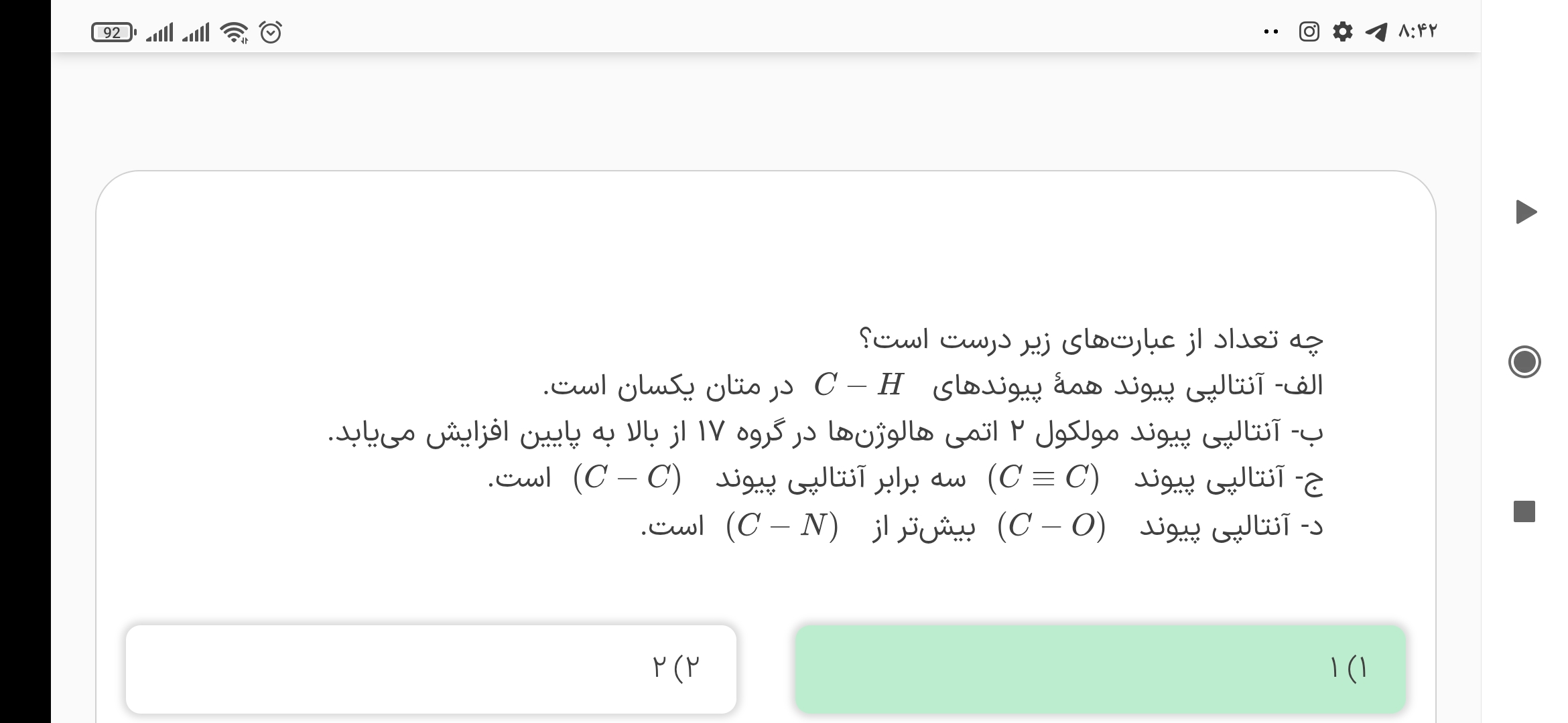 سلام سوال ۳تمرین عبارت ت نوشته که انتالپی پیوند کمیتی همواره مثبت است پس چرا ما منفی اش رو تو گزینه ها داریم یا اینک انتالپی پیوند تشکیل منفی میشه چرا میگه همواره؟؟