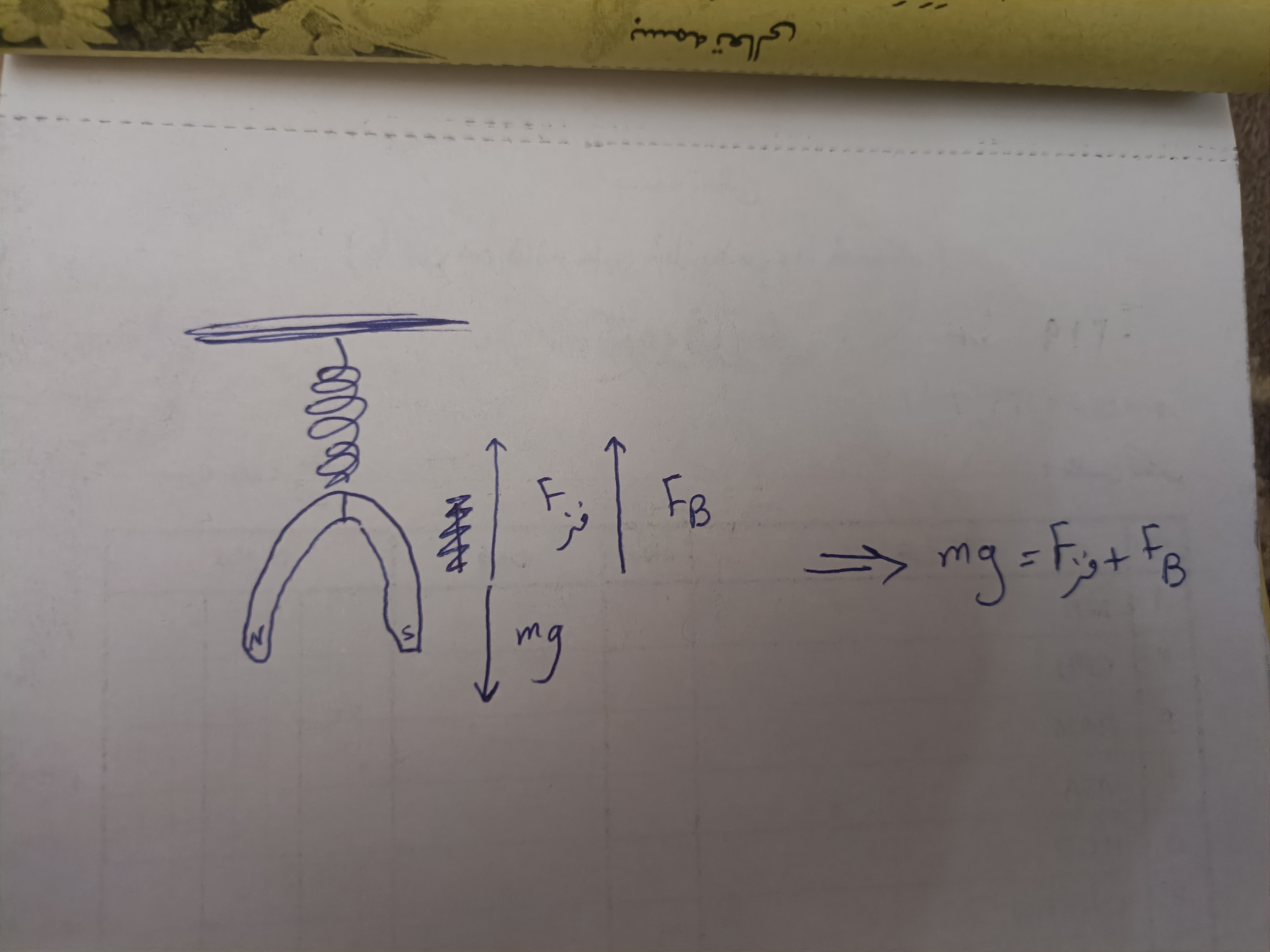 این نیروهای وارد بر آهنربا دقت کنید که مقدار mg و Fفنر را نداریم