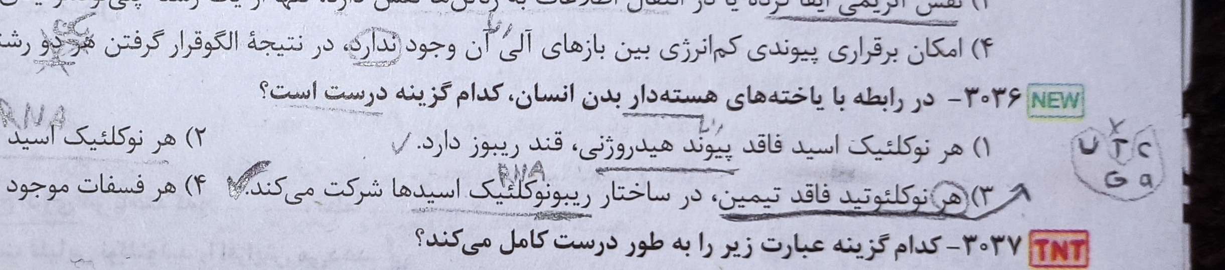 @محمدعرفان محمدی هر که اول جمله اومده انحصاری کرده. هر نوکلیوتید فاقد تیمین میتونه نوکلئوتید با قند دئوکسی ریبوز و باز آدنین باشه.