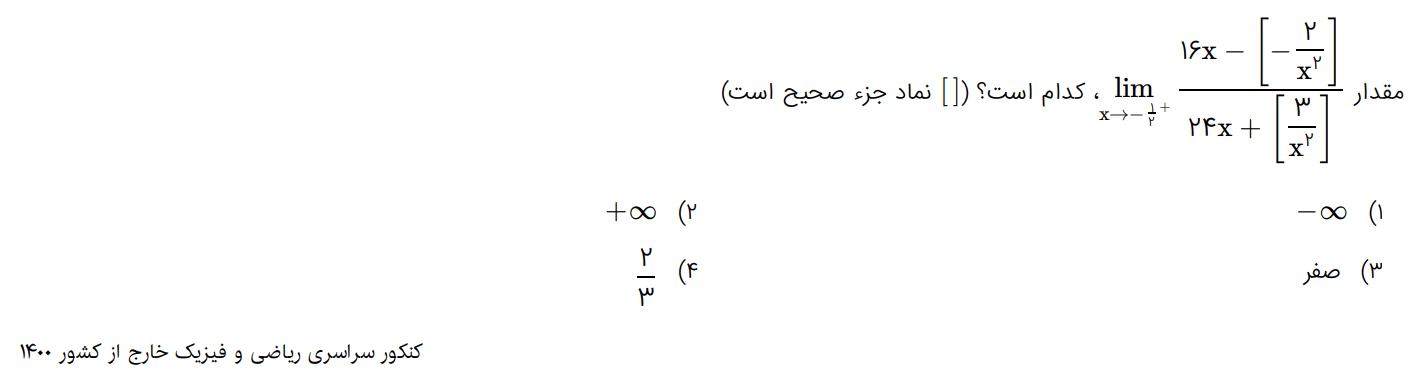 @امیرعلی کریمی سلام وقتتون بخیر شما در صورت کسر -۲ دارید در مخرج دارید ۱/۴ که از مقادیر کمتر بهش نزدیک میشید وقتی معکوس بشه میشه ۴ ای که از مقادیر بیشتر بهش نزدیک میشید وقتی در ۲ ضرب بشه میشه ۸ ای که از مقادیر بیشتز بهش نزدیک میشید حالا اگر ۸ ای که از راست بهش نزدیک میشید رو قرینه کنید میشه -۸ ای که از چپ بهش نزدیک میشید و براکتش میشه -۹
