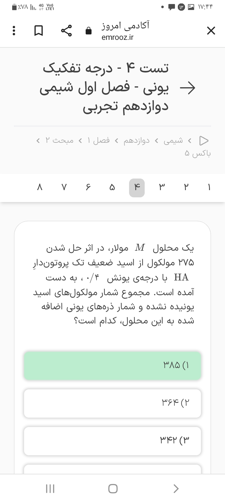 من بین گزینه ۴ این سوال و سوال قبلی(سوال شماره ۸) یه تناقضی احساس کردم گزینه ۴ این سوال وقتی تعداد ذره های اضافه شده به محلول رو میخواد، ما میایم مجموع تعداد ذره ها در انتهای یونیده شدن رو منهای اون ۱۰۰۰ ذره HA که ابتدا ریخته بودیم میکنیم که بفهمیم چند ذره اضافه شده اما تو سوال قبلی وقتی صورت سوال گفت ۲۶۰ ذره به آب اضافه میشه، اومدیم فقط مجموع ذره ها در انتهای یونیده شدن رو ۲۶۰ درنظر گرفتیم درحالی که اگه میخواستیم طبق این سوال پیش بریم باید میگفتیم مجموع ذره ها در انتها منهای اون ۲۰۰ تایی که اول ریختیم باید بشه ۲۶۰ چون ۲۶۰ تا به محلول (اضافه) شده
