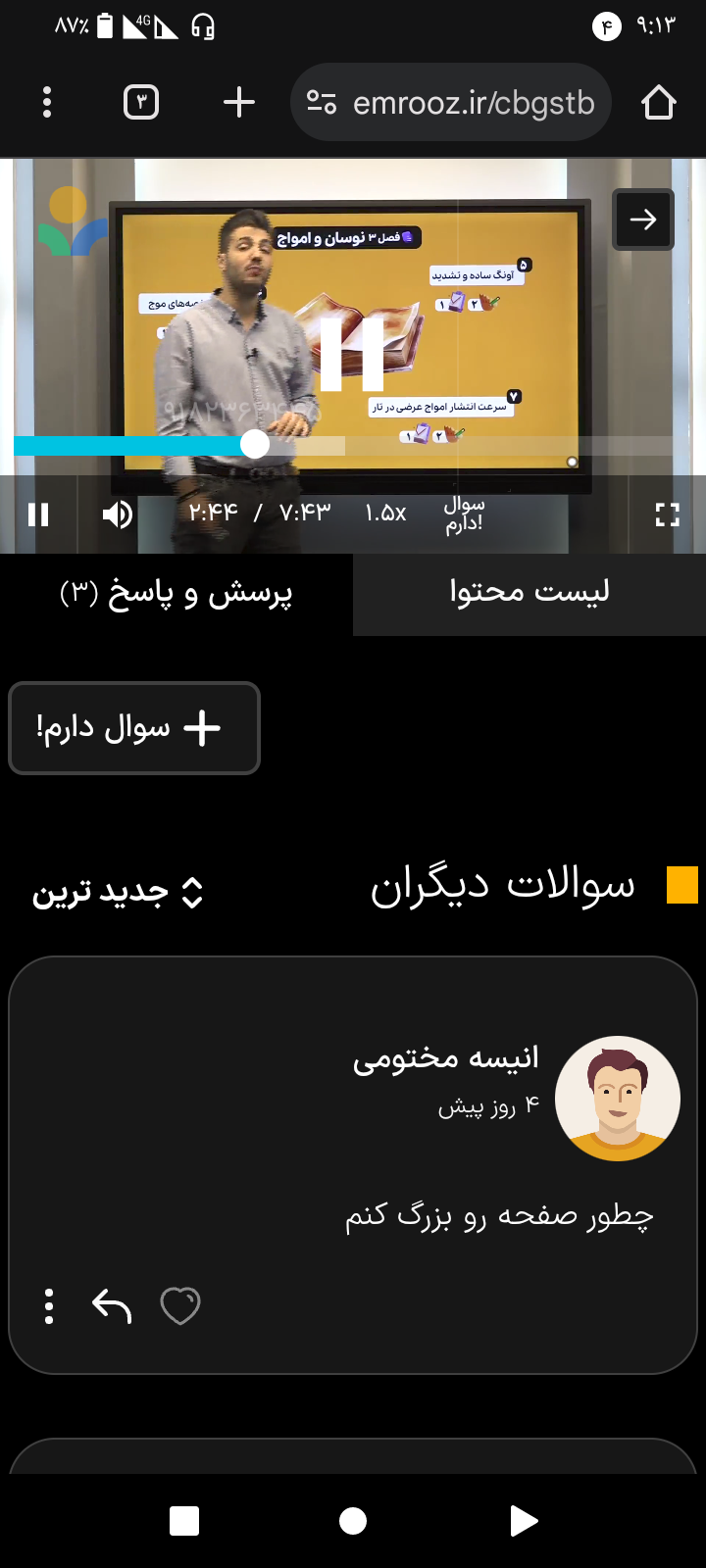 سلام ممکنه پاسخ چی یاد گرفتی فصل ۳ درس ۱ حرکت نوسانی رو توضیح بدین