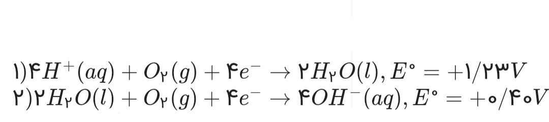 سلام پتانسیل کاهشی اکسیژن مثبته یعنی شیب هيدروژن اکسیژن مثبت باشه چجوری واکنش انجام میشه