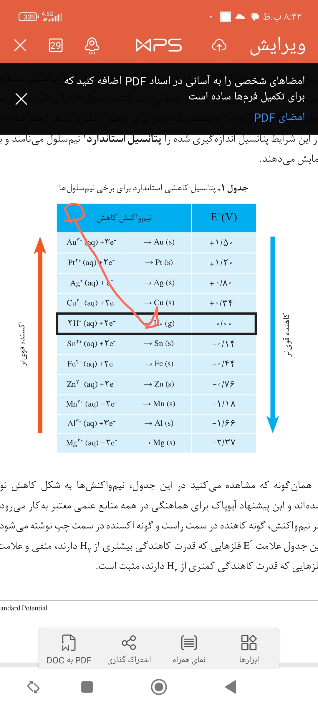 سلام با توجه به جدول پتانسیل کاهشی که توی کتابتون گفته شده این رو فهمیدیم