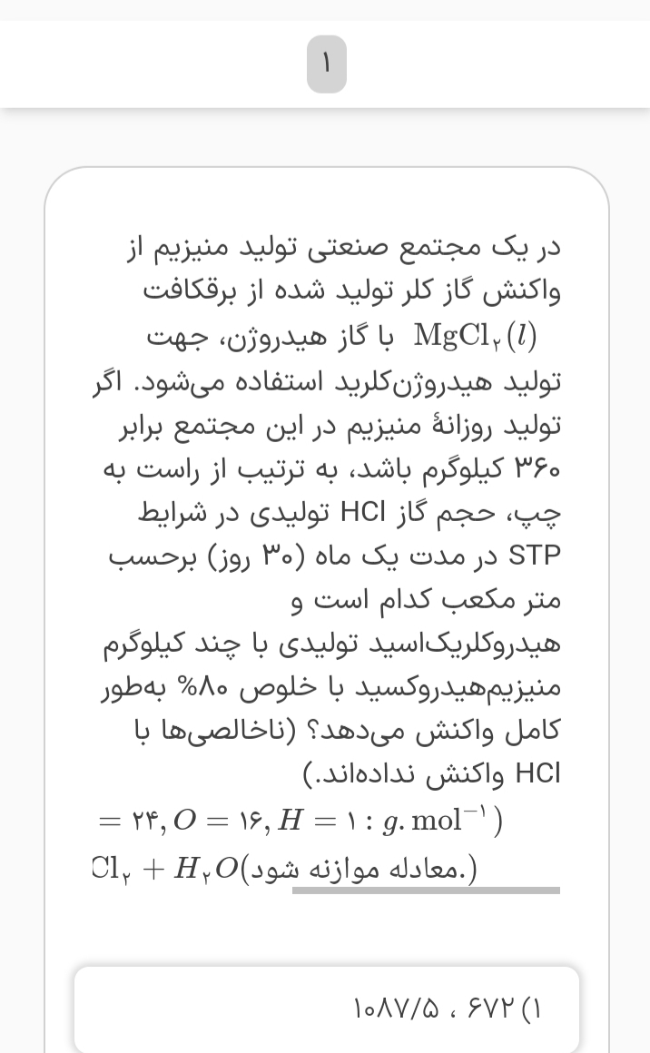 سلام بله درست میگید منیزیم کلرید (aq) بعد از خشک کردن و بعد ذوب کردن به حالت مذاب (l) درمیاد