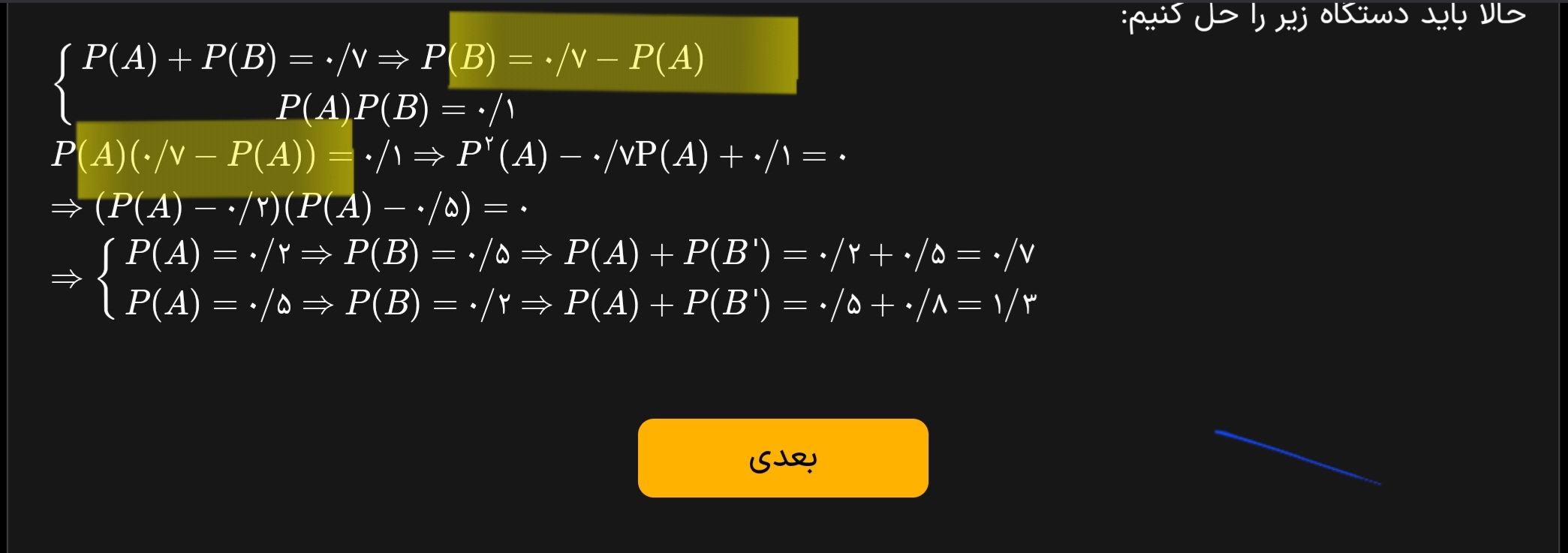 سلام خسته نباشید یه سوال راجع به این تست که لینکشو گذاشتم داشتم زیر همون تست نمیشد سوال پرسید اگه نوشته بود با کدام احتمال این کشتی گیر قهرمان می شود *و* (به جای*یا*) رقیب اصلی خود را می برد ، باید یک پنجم رو ضربدر یک سوم می کردیم؟؟؟؟!!! https://emrooz.ir/courses/252/9123/65374
