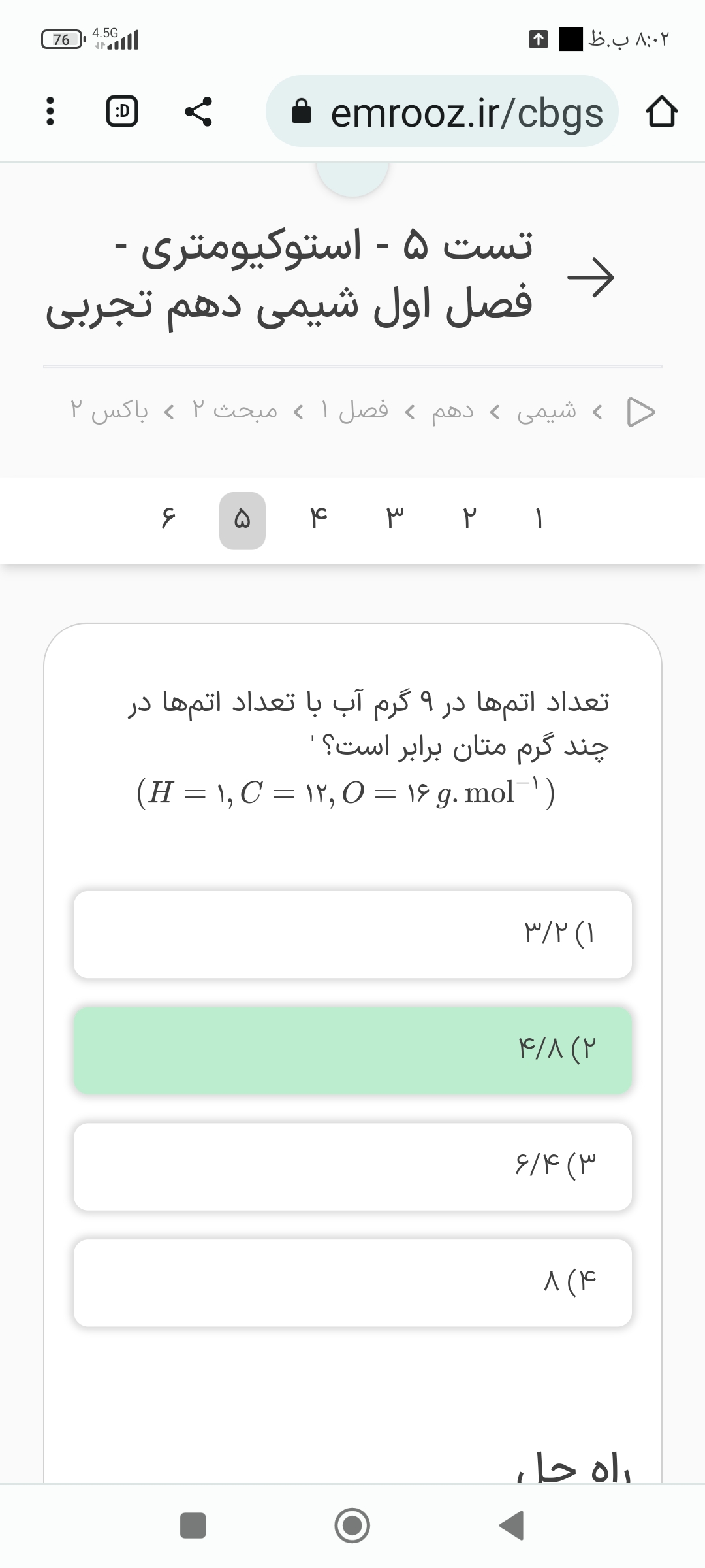 @هانیه بختیاری فرمولش CH4 هست میشه ۵ تا