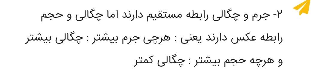 سلام ؛ ببخشید ، مگه استاد نگفته بودن که « جرم با چگالی رابطه مستقیم دارد » ؛ مگر اینجوری نمیتونیم بگیم اگر جرم دو برابر شود ، چگالی هم دو برابر می شود .