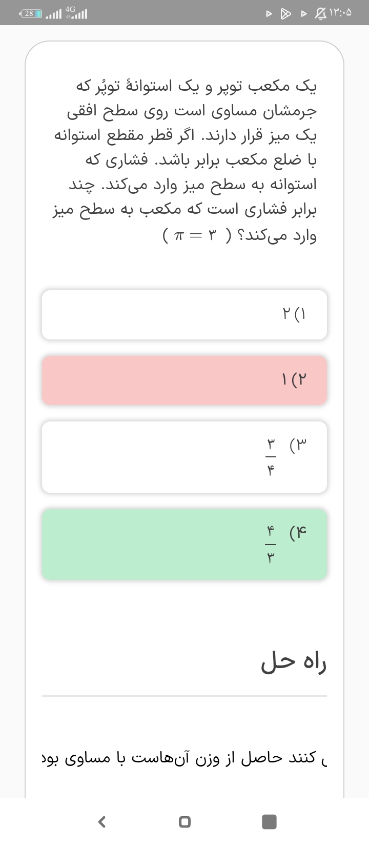 گفته فشار وارد شده وقتی گفت نیروی وزن چقدر هست اون موقعه mgهم وارد بازی میشه