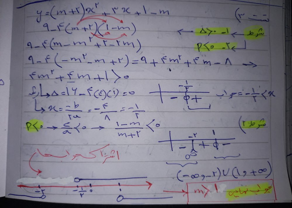 سلام خسته نباشید ایجا برا اینکه دوتا جوابامون مختلف العلامت بود دلتا رو حساب نکردی، ولی اگه بیایم از راه دلتا مقدار mرو بدست بیاریم راه حلمون و جوابمون علط میشه؟