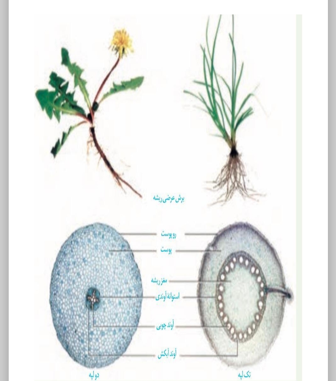 ریشه قطور که ریشه های فرعی فراوان روی اون قرار دارن رو واسه تک لپه بگیریم یا دولپه ؟! تک لپه میشه ریشه افشان ، دو لپه میشه عمودی حالا لفظ گزینه یک برای کدومشون درسته؟!