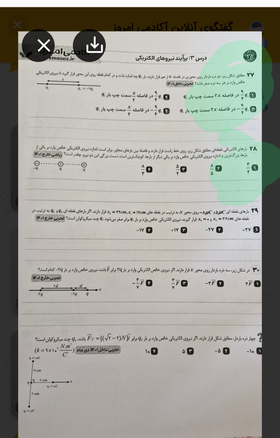 سلام وقتتون بخیر سوالات ۲۶و ۲۷ و ۲۸ رو اصلا پیدا نمیکنم بقیه سوالات رو از آموزش رایگان قسمت حل سوالات کنکور پیدا کردم ولی این سه تا سوال هر چقدر نگاه کردم نبود