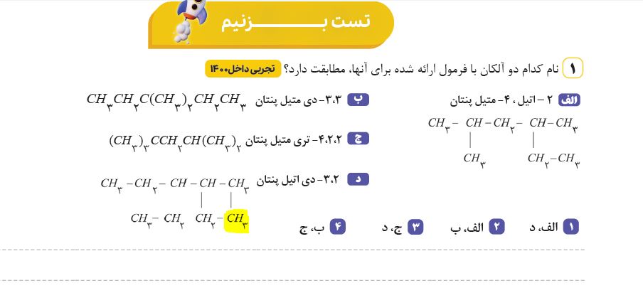 @زینب مقدم نام گذاری الکان ها قسمت دوم بخش تست ها تست اول مورد دال