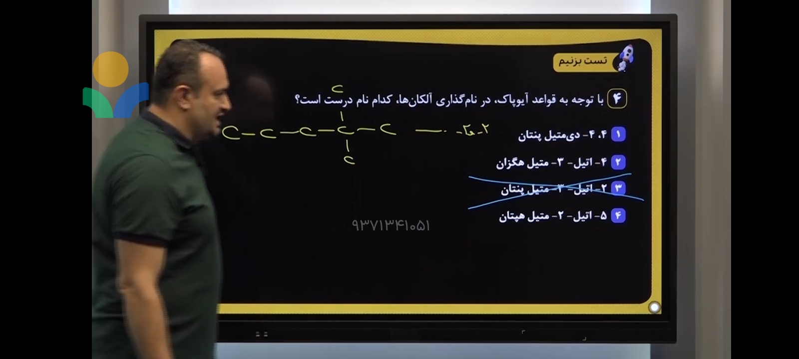 سلام می تونستیم برای گزینه ۴ اول متیل رو برای نام گذاری بگیم ؟ یعنی بگیم ۲-متیل - ۵-اتیل هپتان؟