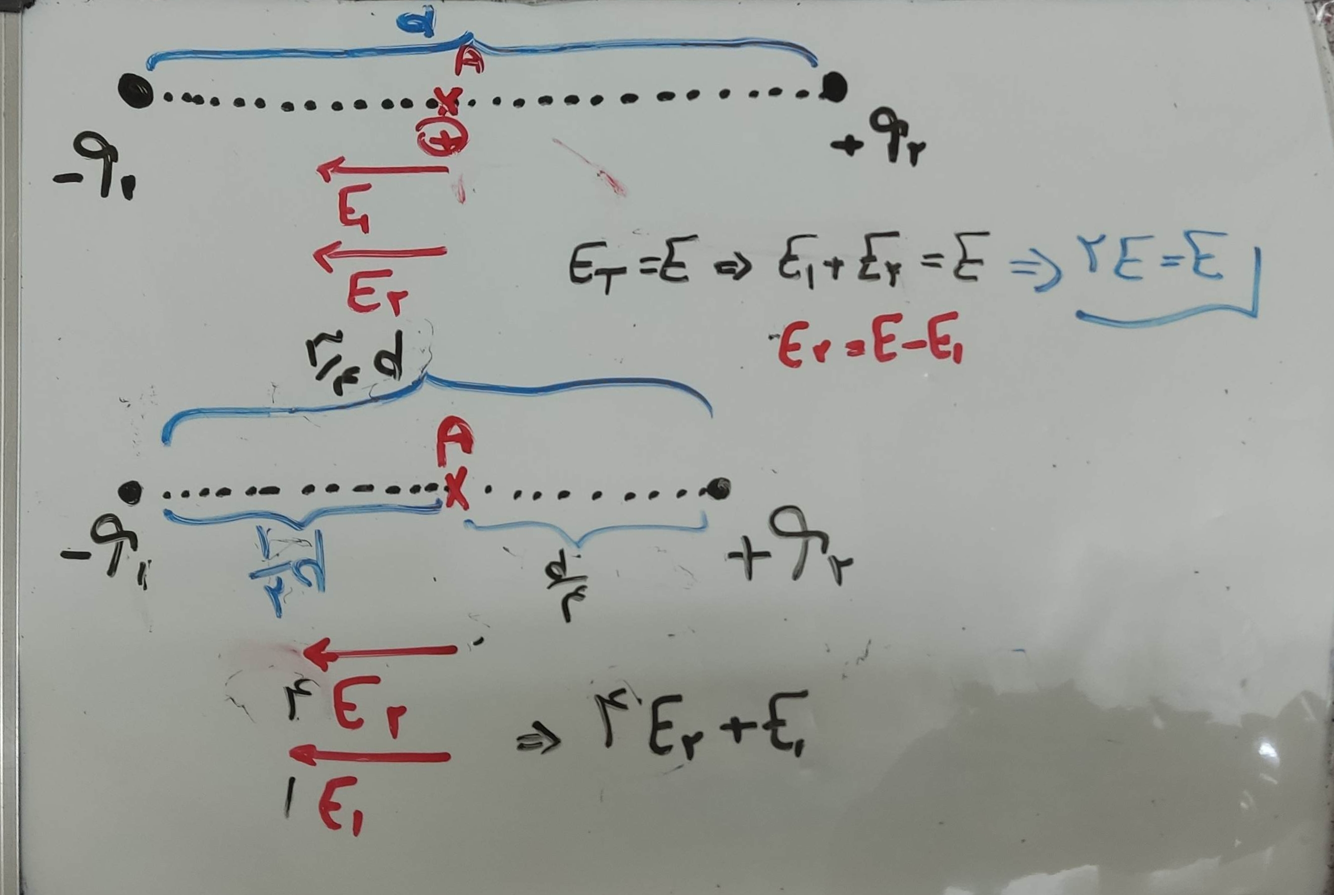 مگه نگفتیم که بار ها برابر فاصله ها برابر پس میدان هه هم برابر پس چرا Et به سمت راست شد