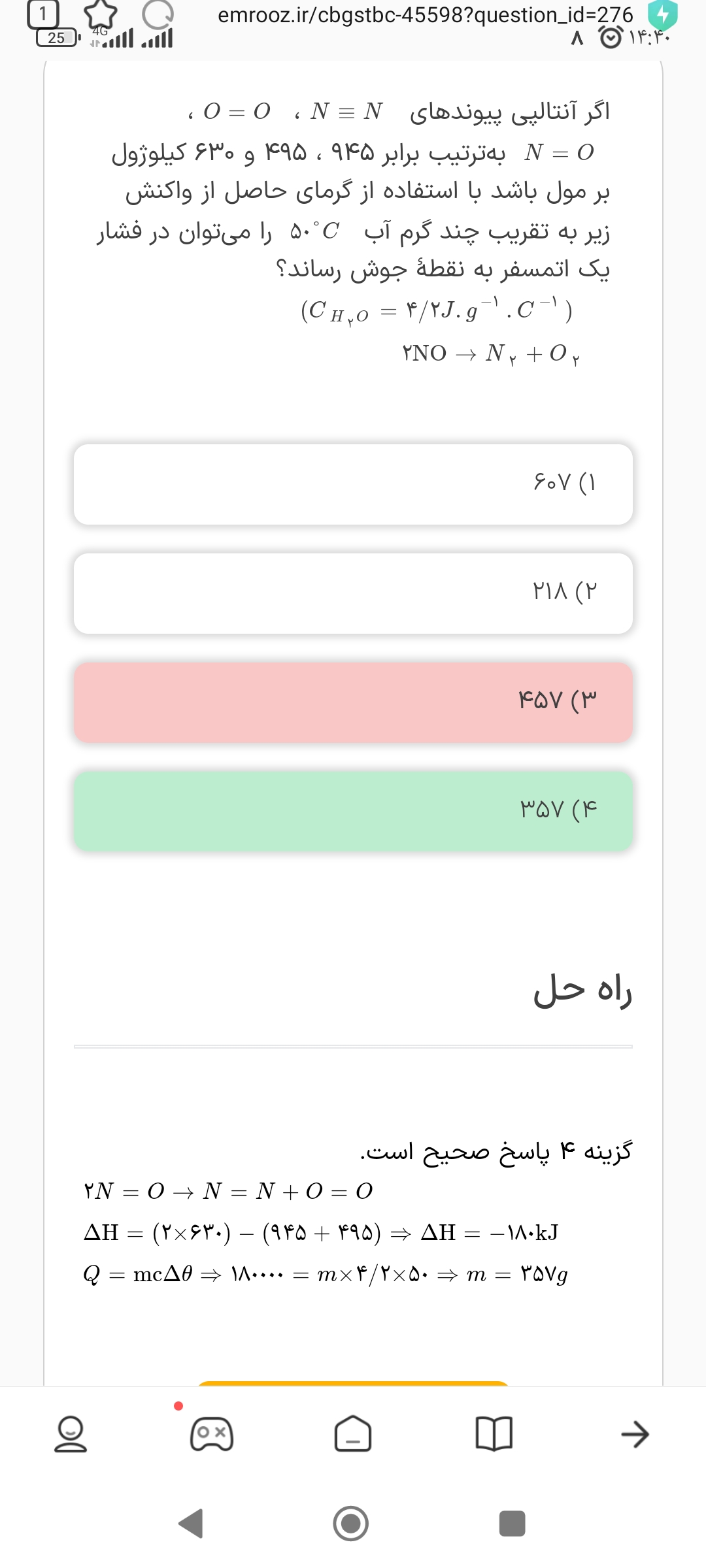 سلام تست ۵ تمرین یادبگیریم8 چرا تو پاسخنامه هیدرازین رو گازی در نظر گرفتید که میشه مایع ولی آب رو مایع در نظر گرفتید میشه گاز ؟ تو صورت سوال هم هر دوتاشون رو مایع گرفته مثلا چرا پاسخنامه نگفته : 2H۲O (g) → ۲H۲O (l) , ΔH= - ۸۲ kJ