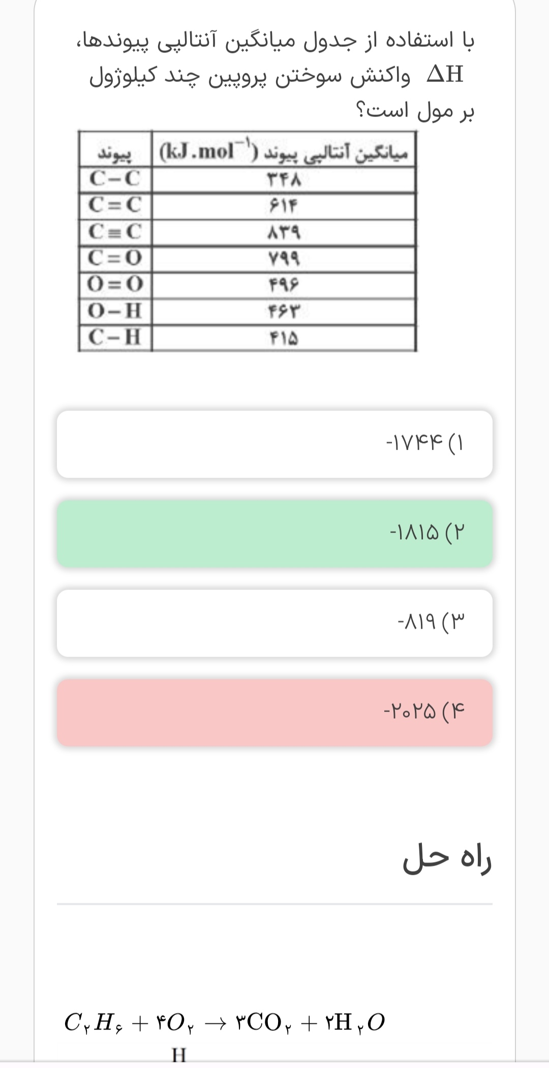 چرا متن سوال ۷ تمرینای همین باکس آنتالپی سوختن پروپین رو خواسته بعد راه حلش اومده کلا با اتان حل کرده؟😐
