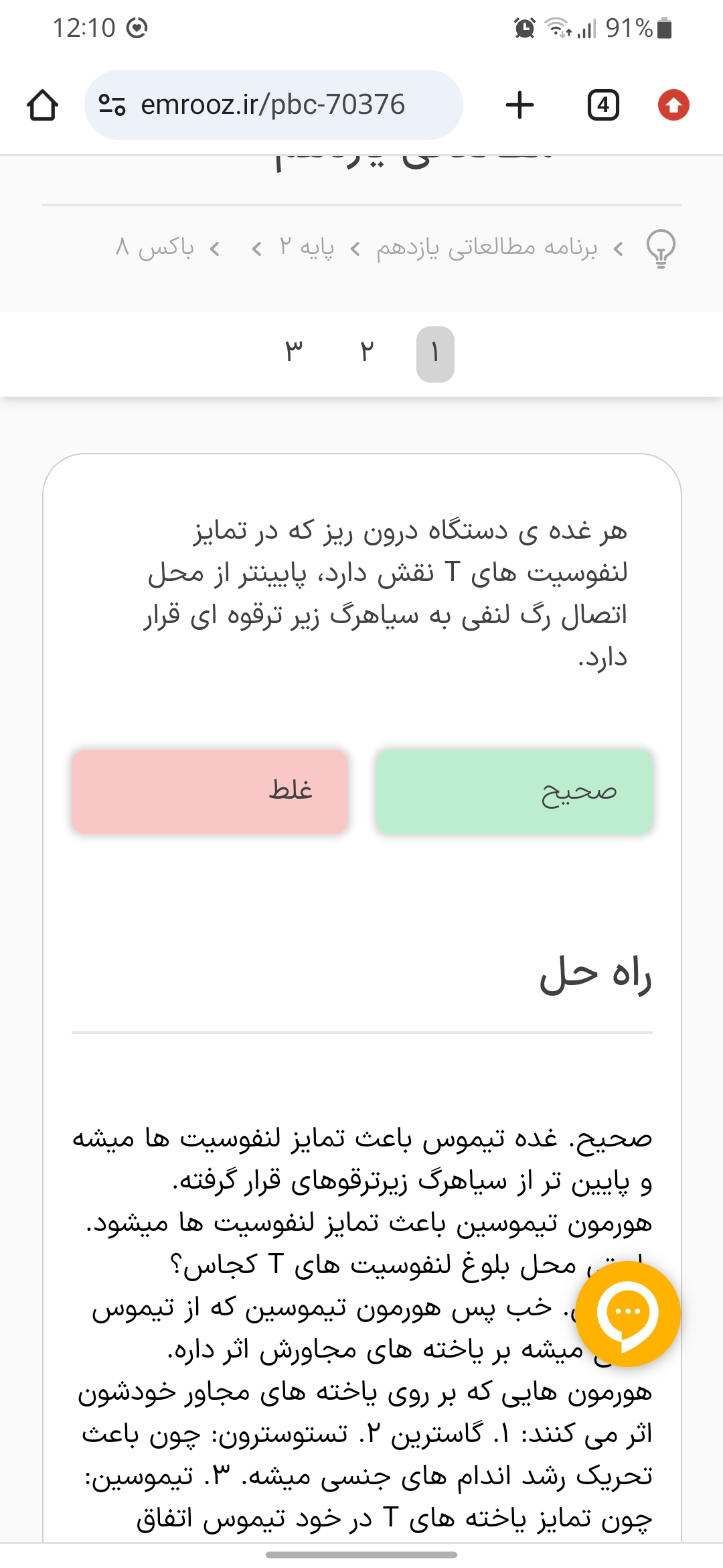 سلام اینجا منظور از غده ای که در تمایز لنفوسیت های T نقش دارد میشه غده تیموس فکر می کنم شما اینجا لنفوسیت هاَ T رو با هورمون های T3 و T4 اشتباه گرفتید چون اصلا سوال درمورد T3 و T4 نیست و منظور اصلی سوال غده تیموس است