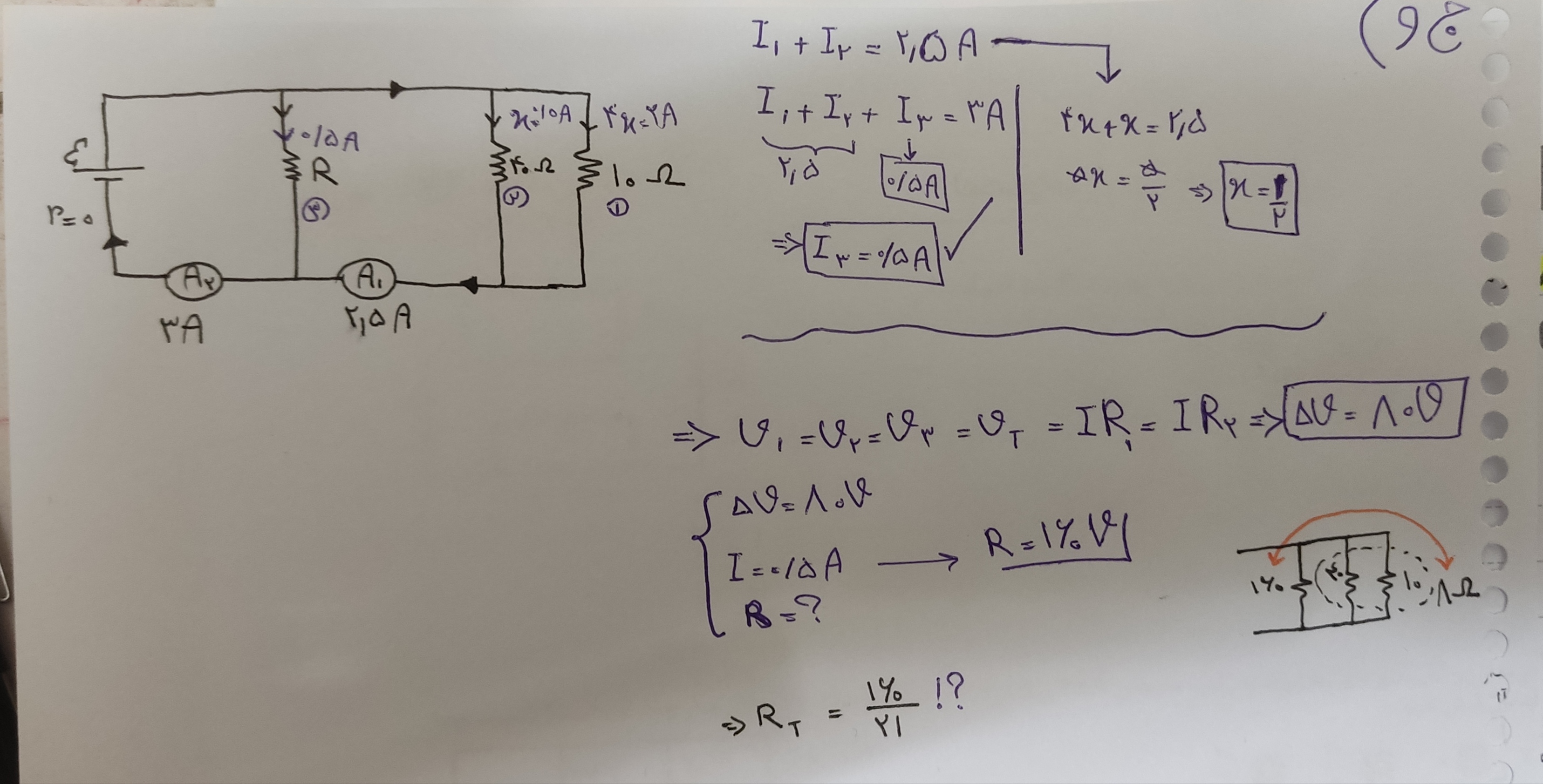 سلام وقتتون بخیر من روش استاد رو فهمیدم اما خودم به یه شکل دیگه حل کردم اول از تکنیک جریان مقامت 10 و 40 اهمی رو به دست اوردم اینو به این خاطر گفتم که جریان امپر سنج A1 جمع جریان اون دوتا مقاومته بعد با جریان کل که همون A2هستش مقایسه کردم و جریان مقامت Rرو به دست اوردم بعد چون همه مقامت ها موازی هم بودن گفتم که ولتاژ دوسر همشون برابره ایا این روش درسته؟ جواب من هم درست درومد