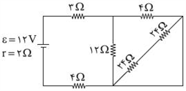 در مدار شکل زیر، توان مصرفی در مقاومت ۲۱ اهمی چند وات است؟