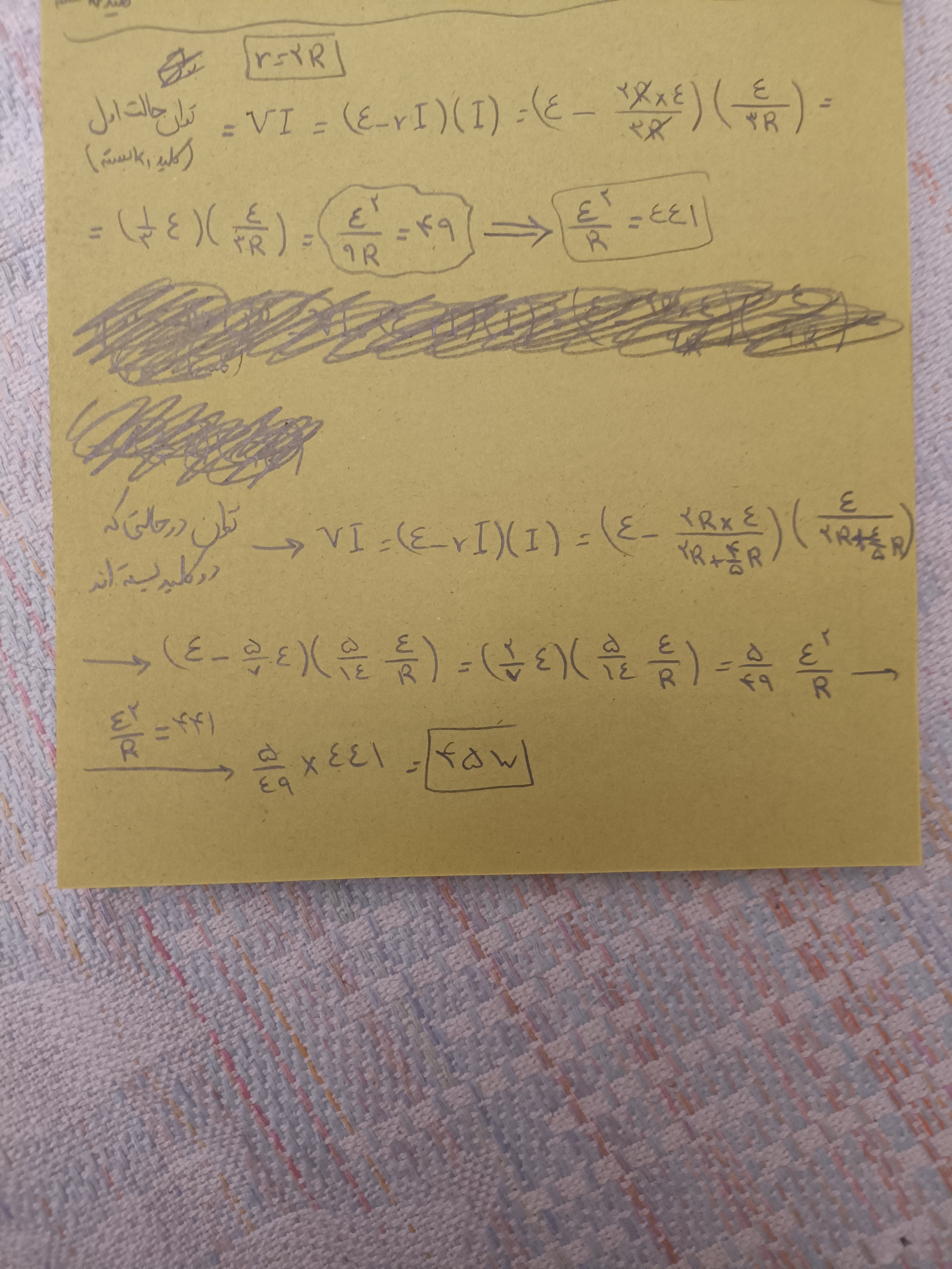 سلام وقت بخیر میگم تو این تست اینجوری شد که توان تو حالت دوم به اندازه مقاومت بزرگتر کمتر از توان تو حالت اول شد یا میشه تو این جور تست ها این نتیجه رو گرفت که توان تو حالت دوم به اندازه مقاومت بزرگتر کمتر از حالت اوله؟