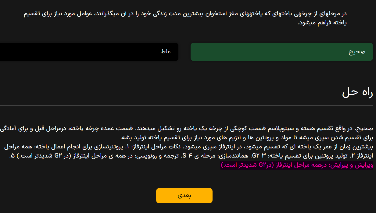 @نرگس مهدوی سلام خسته نباشید . درباره ویرایش در مرحله G2 ، میتونیم اینطوری در نظر بگیریم که اگه فامتن های یاخته در مرحله G2 باشند ، میتوکندری هم امکان داره تقسیم بشه و تو همانند سازی اون ویرایش صورت بگیره ؟ این الان به ذهنم رسید . تعبیر درستیه؟