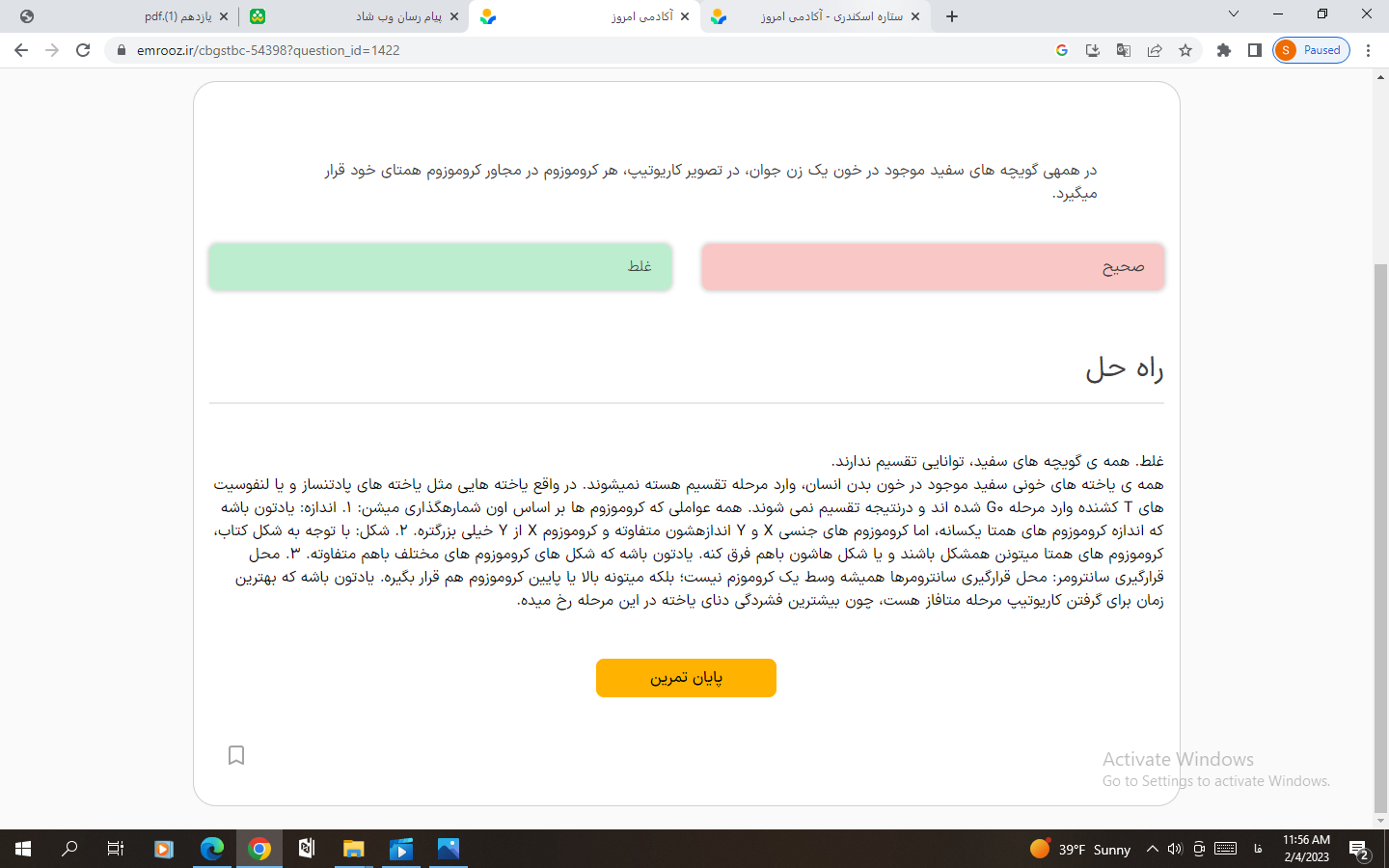 @نرگس مهدوی اخه این سوال داره در مورد مرحله متافاز توی میتوز صحبت می کنه چون در این مرحله کاریوتیپ تهیه میشه ضمن اینکه اصلا مگه گلبول های سفید تقسیم میوز و متافاز یک داره که تتراد تشکیل بده؟