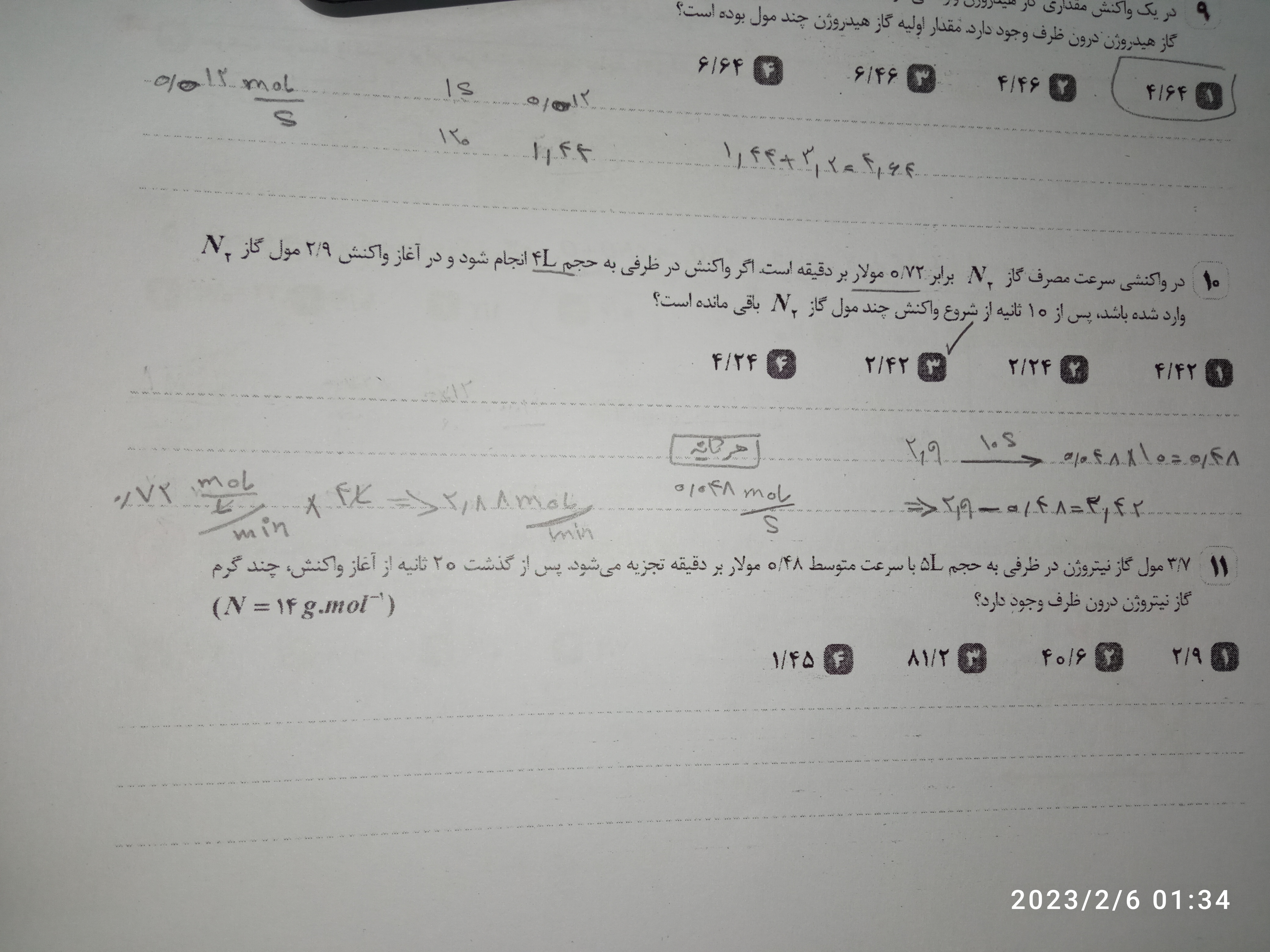 تست مسائل سینتیک (2)
