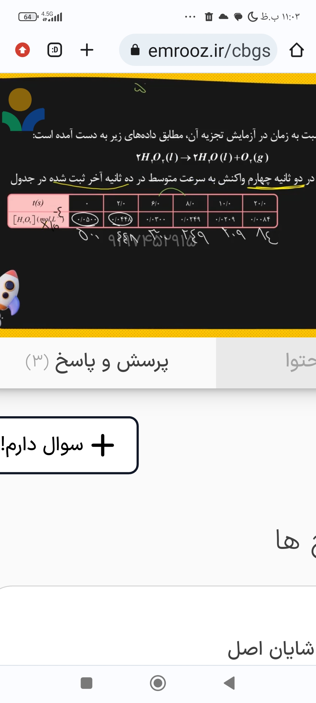 سلام وقتتون بخیر اینجا که گفته سرعت متوسط منظور سرعت متوسط هیدروژن پراکسید هست یا سرعت متوسط کل واکنش ؟ میدونم تو حل سوال تفاوتی ایجاد نمیکنه چون سوال نسبتی هست و حتی اگه سرعت متوسط هیدروژن پراکسید رو هم درنظر بگیریم همین میشه فقط میخام بدونم از کجا فهمیدیم که منظورش سرعت متوسط هیدروژن پراکسید هست آخه روی سوال نگفته که