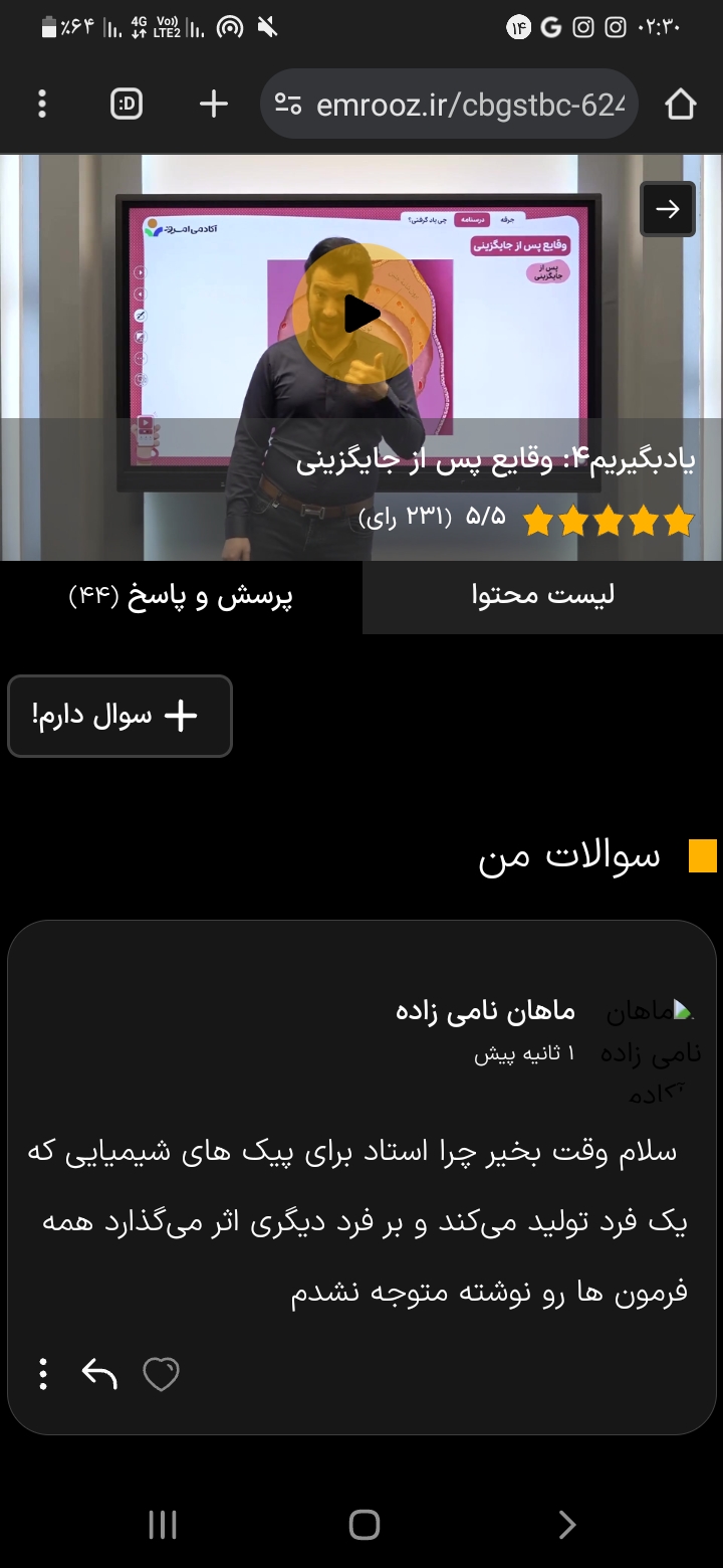 @ماهان نامی زاده 🌷💙 سوالات رو پیدا نمیکنم ماهان جان بیزحمت دوباره زیر همون فیلم یه کامنت جدید بذار ♥️