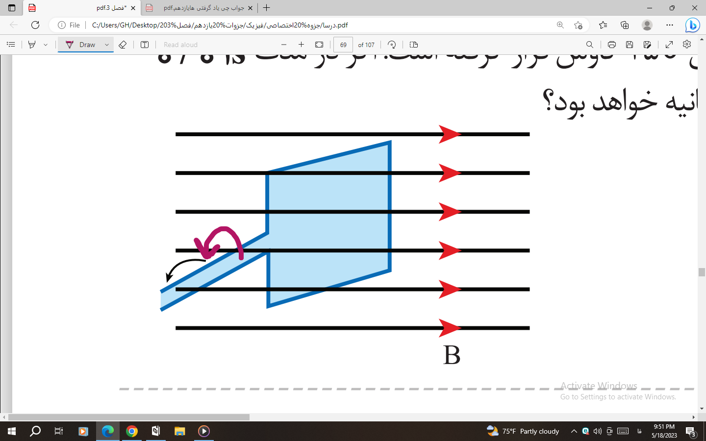 سلام به نظرتون نباید به جای این مدلی که برای چرخش توی شکل مشخص شده، این طور که من مشخص کردم باشه؟ چون من خودم (در اون مدل) فکر کردم اون بخش دسته مانند را گرفته و به شمت پاسن کشیده و بخاطر همین گفتم کسینوس تتا تغییری نکرده و تغییرات شار را صفر در نظر گرفتم.
