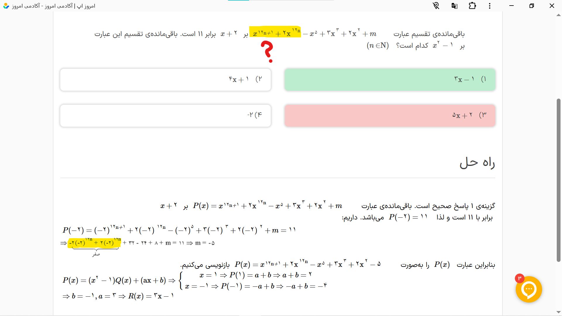 چطور جواب اون قسمت زرد رنگ شد صفر و اینکه اگر امکانش هست سوال رو توضیح بدین کلش رو