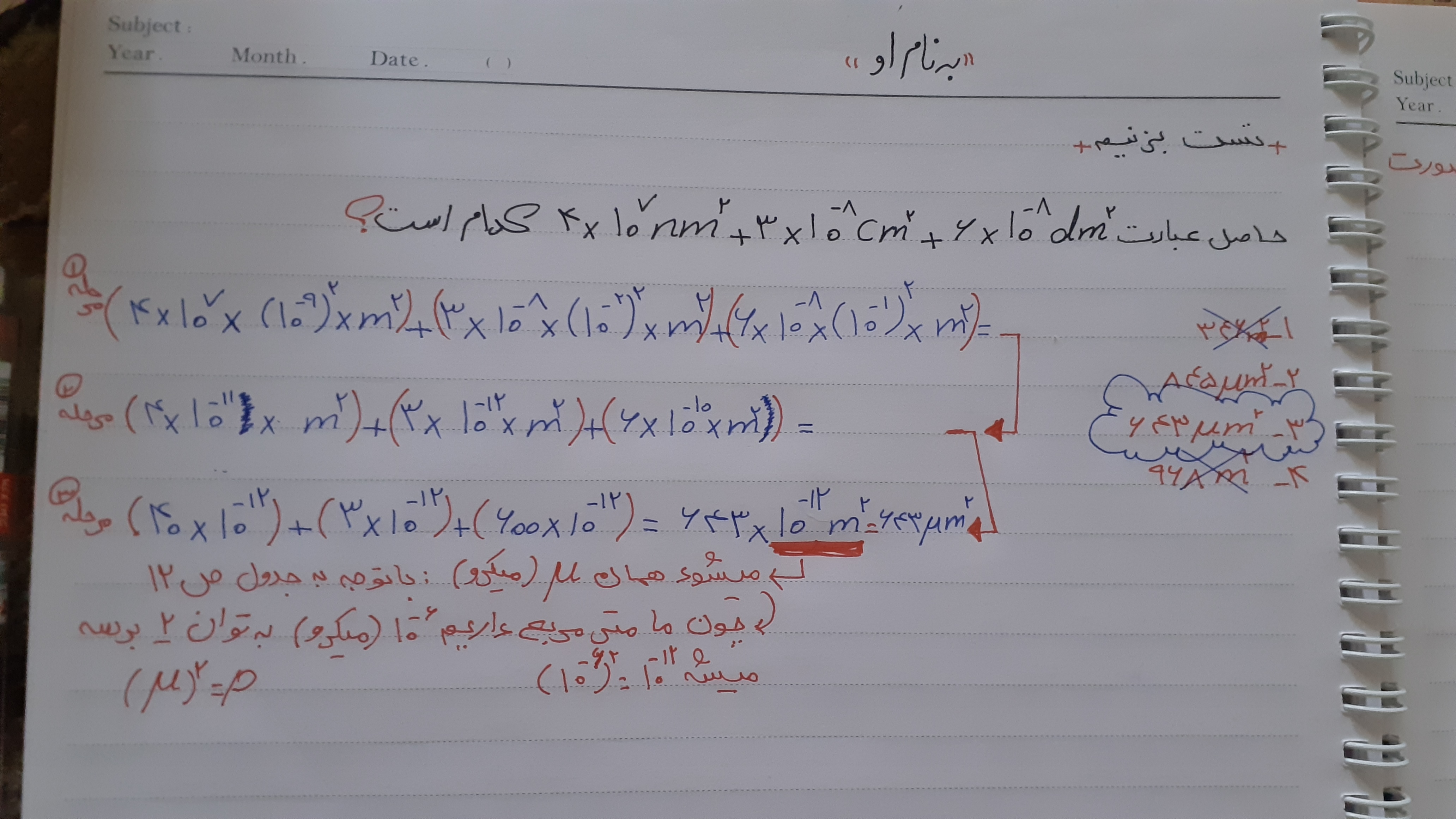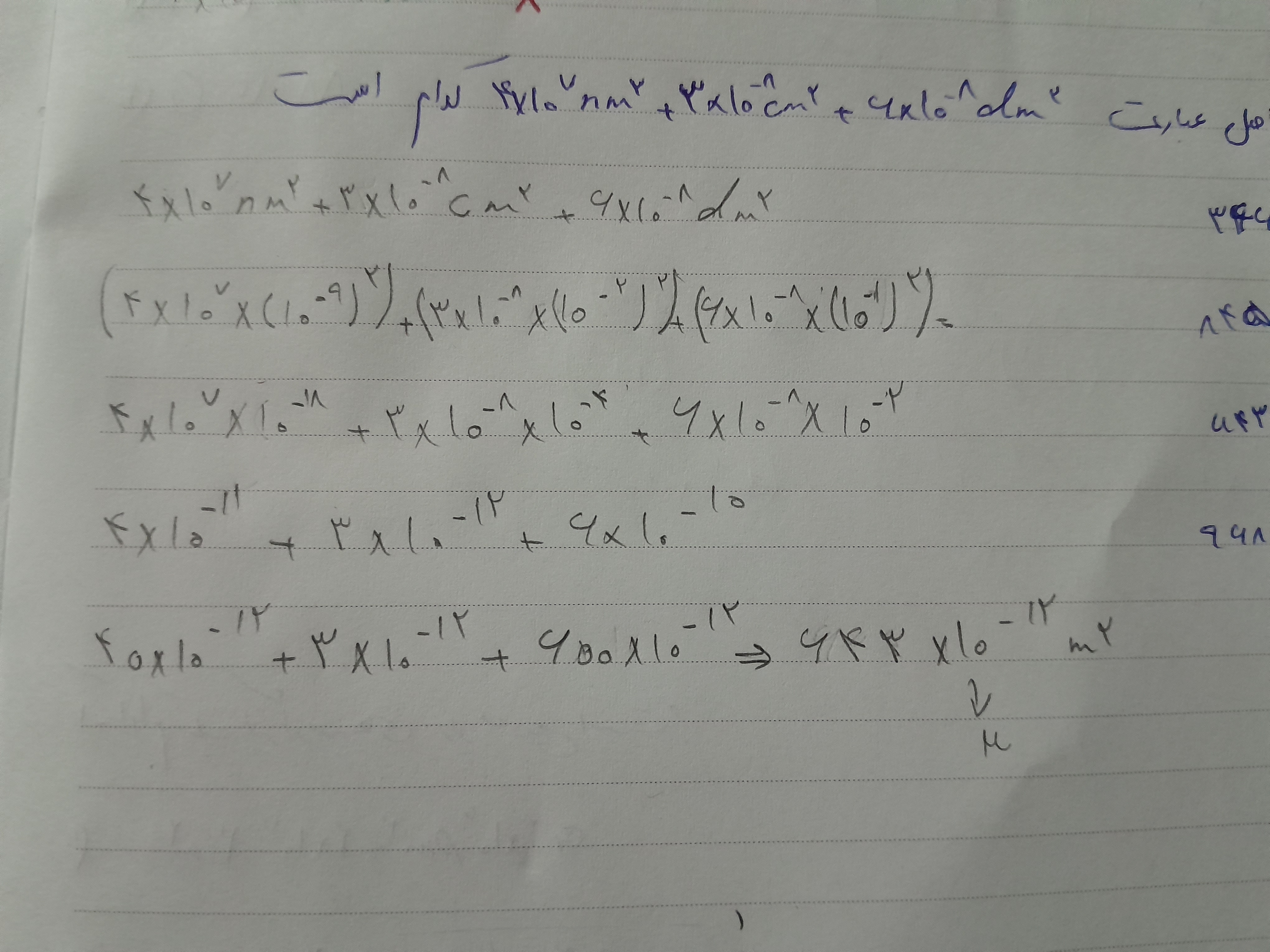 دقت کن متر مربع داری میکرو متر مربع،برابره با ده به توان منفی دوازده متر مربع به اون توان دو دقت کن