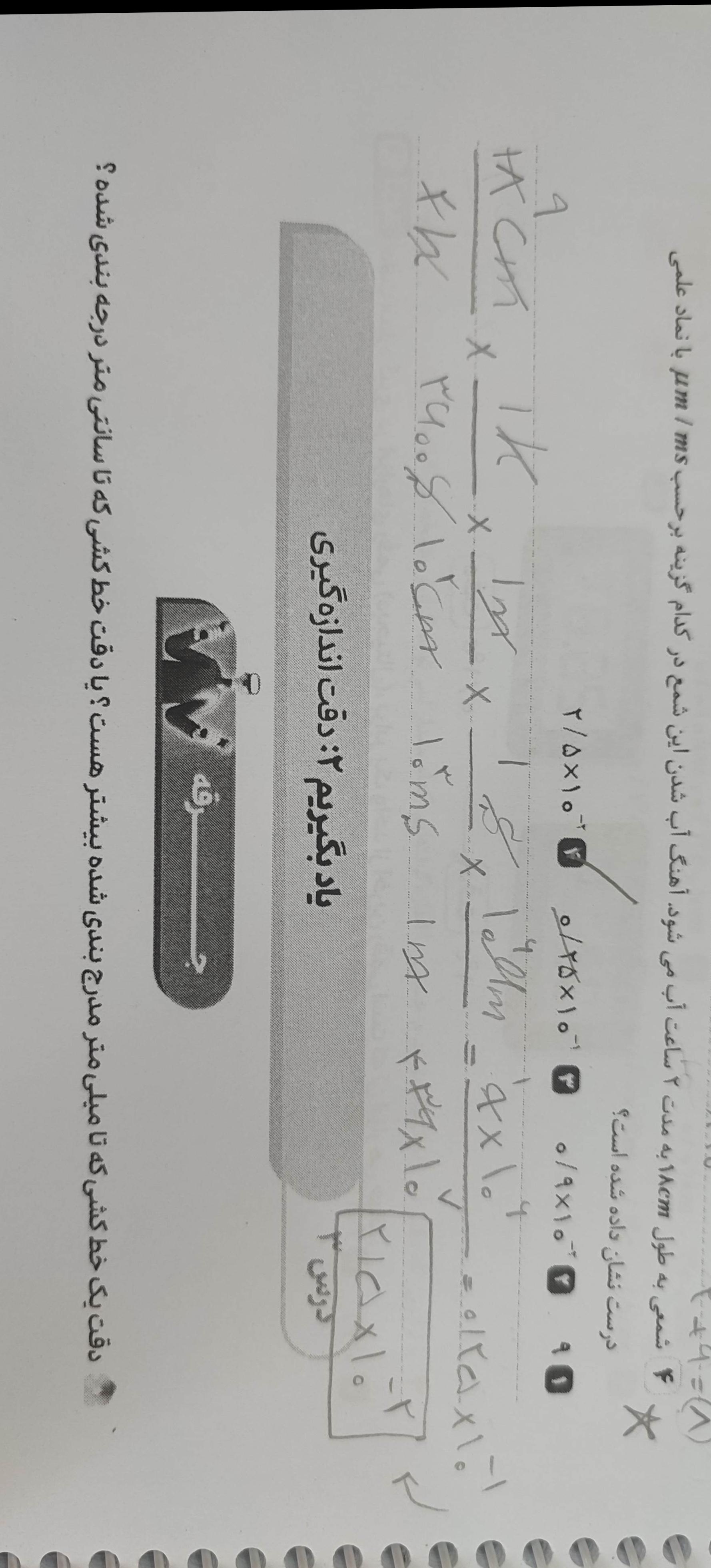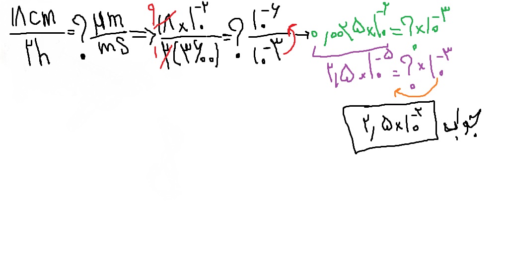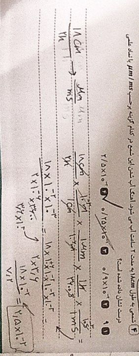 میتونستیم زودتر هم به تست جواب بدیم.همون اول گزینه 2 و 3 حذف میشن چون برحسب نماد علمی نیست گزینه 1 و 4 می مونه که بعد از تبدیل واحد معلوم میشه جواب 9 نیست پس گزینه صحیح گزینه 4