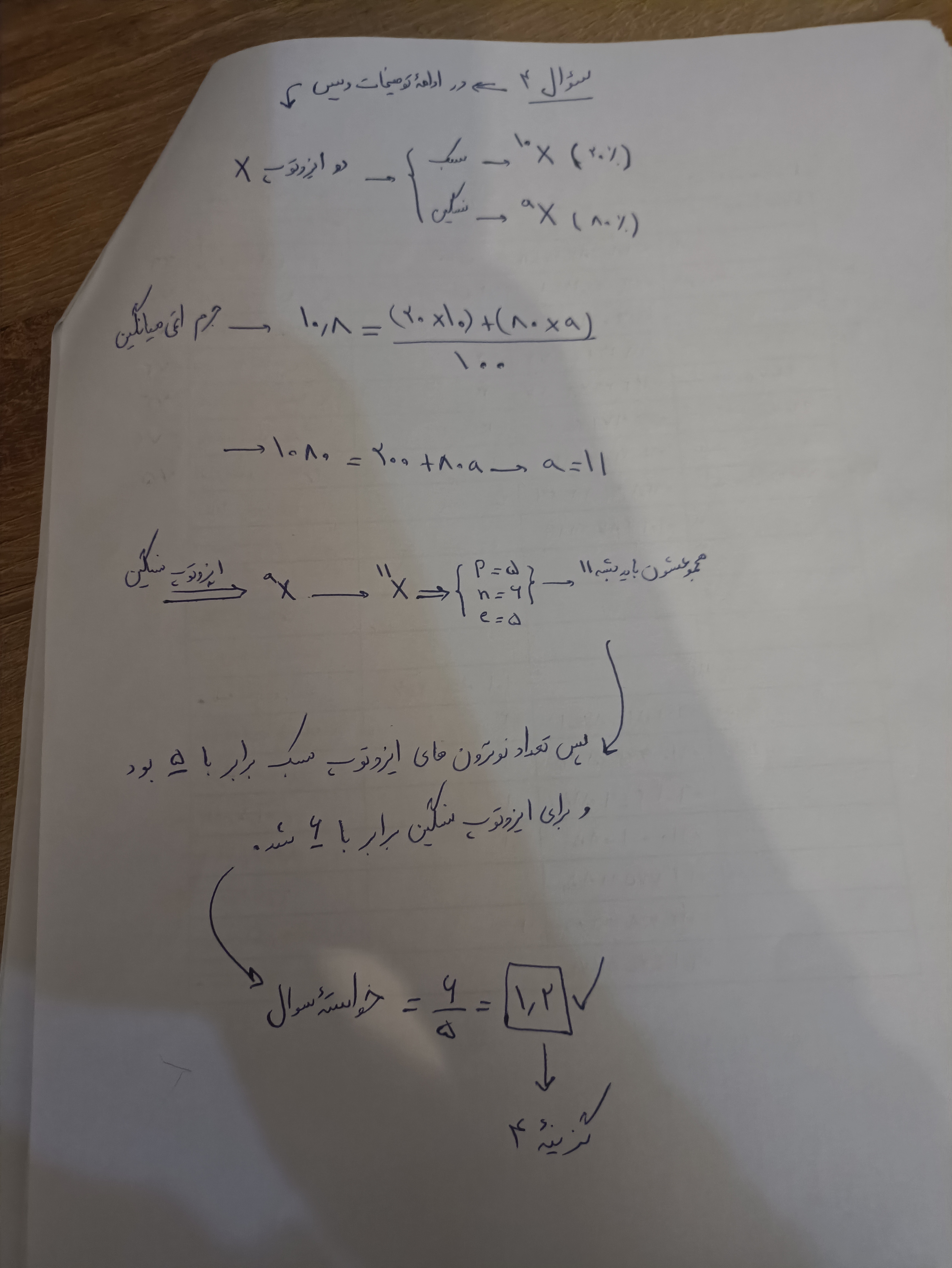 در رابطه با این سوالو سبک ترین ایزوتوپش میشه ۱۰ درصد و سنگینه ۳۰ درصد چرا اینطوری میشه از کجا متوجه باید شد؟