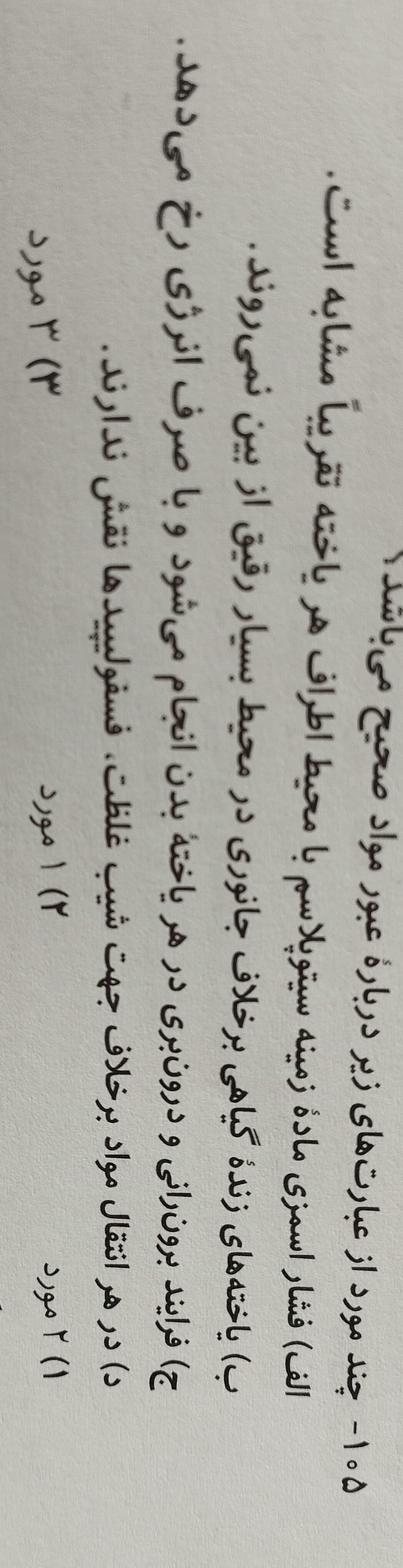 سلام تو این تست گزینه چهار چرا درسته؟ اخه استاد گفته بودن شیب غلظت واسه درون بری و برون رانی استفاده نمیشه این گزینه رو تحلیل کنین لطفا که چرا درسته