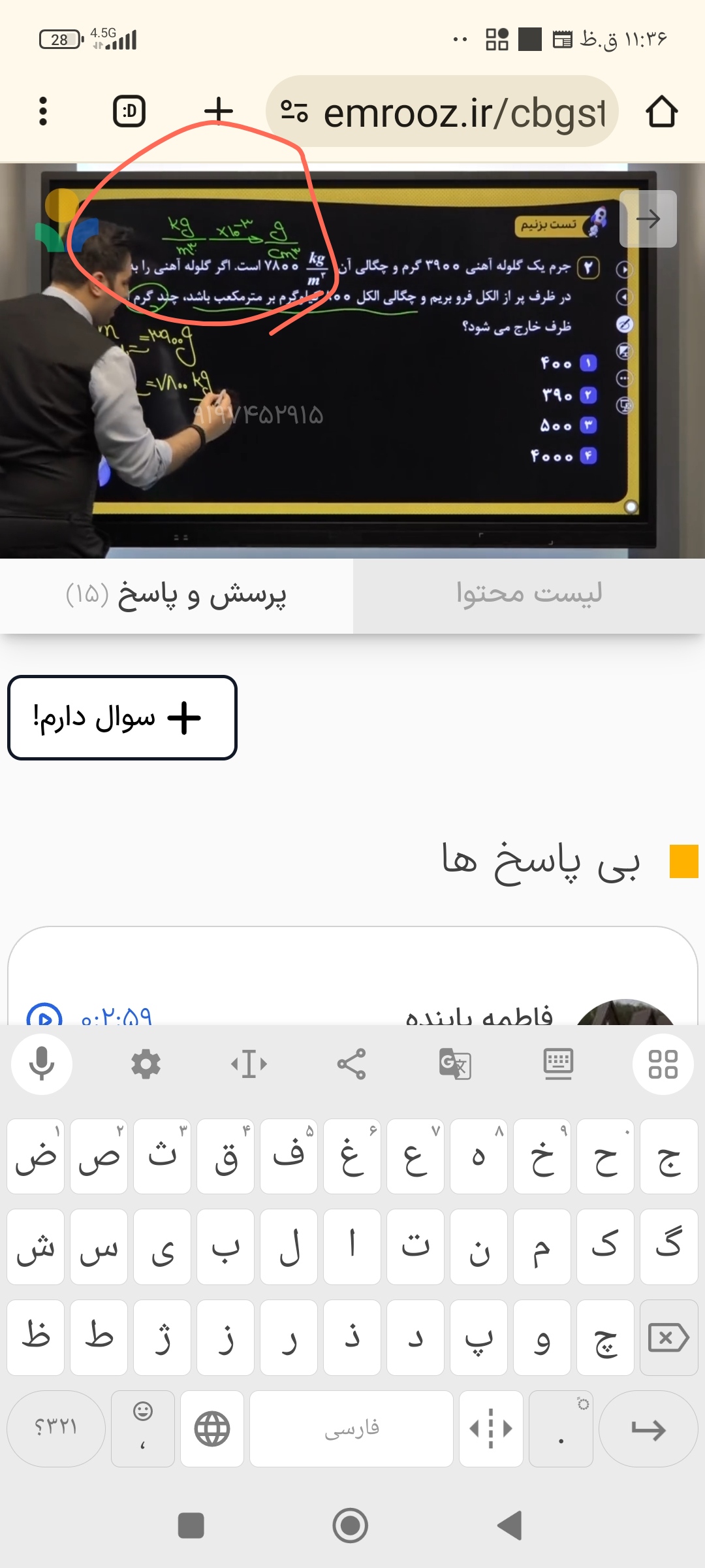 سلام سوالم به صورت صوت هست لطفا جواب بدید یعنی ۷۸۰۰ کیلوگرم بر متر مکعب رو ضربدر ۱۰۰۰ کردم شد ۷۸۰۰۰۰۰ گرم بر متر مکعب و در ادامه هم جوابم شد ۴۰۰