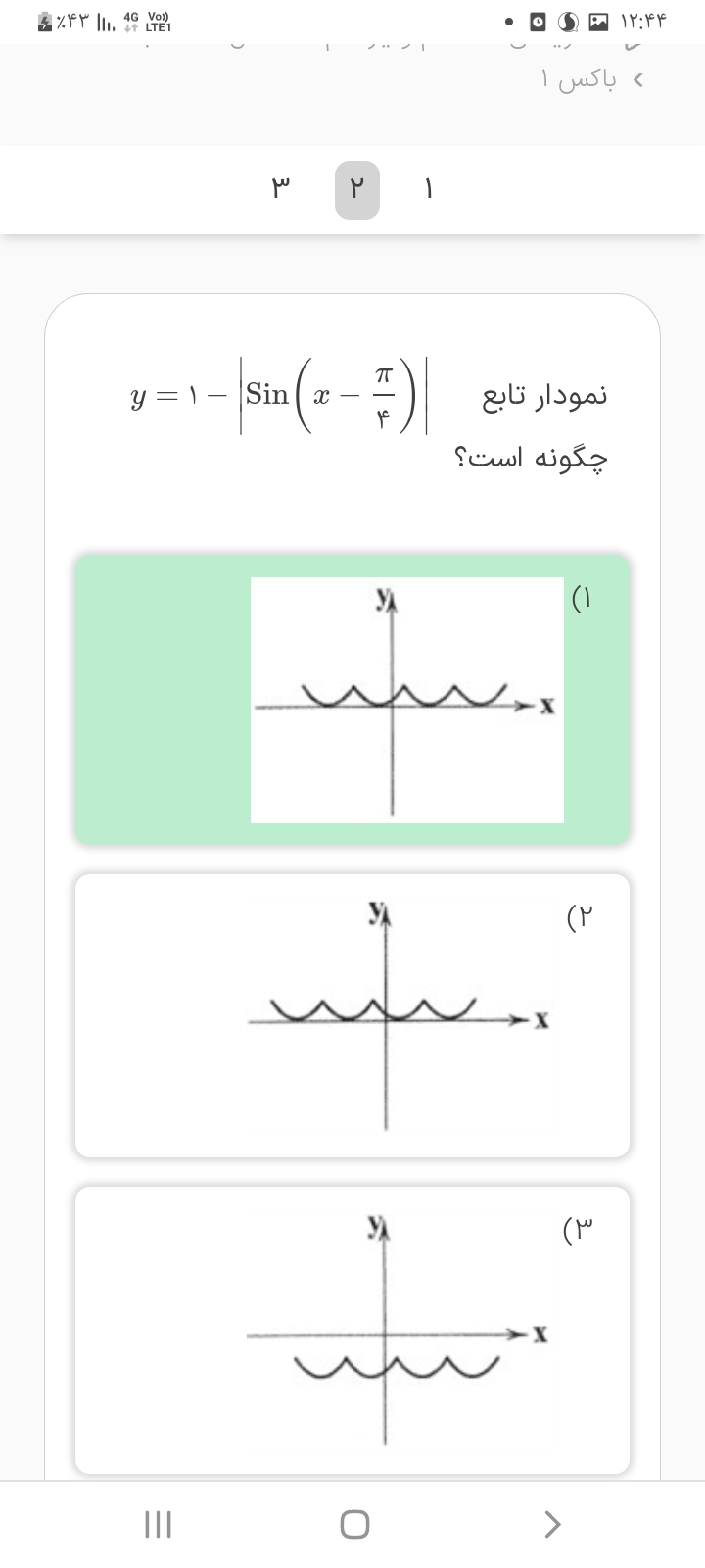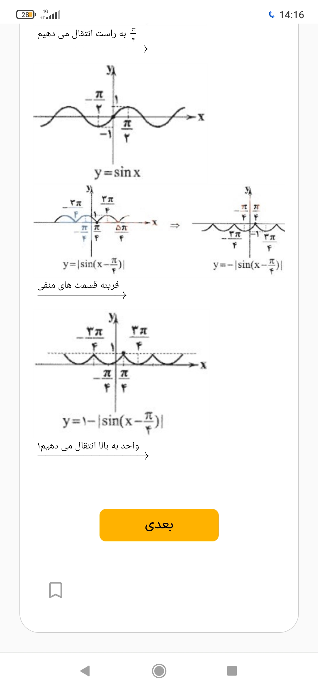 میشه تو ضیح بدین وقتی y=|sin (x _π\4) همه نموداره به سمت بالا میره