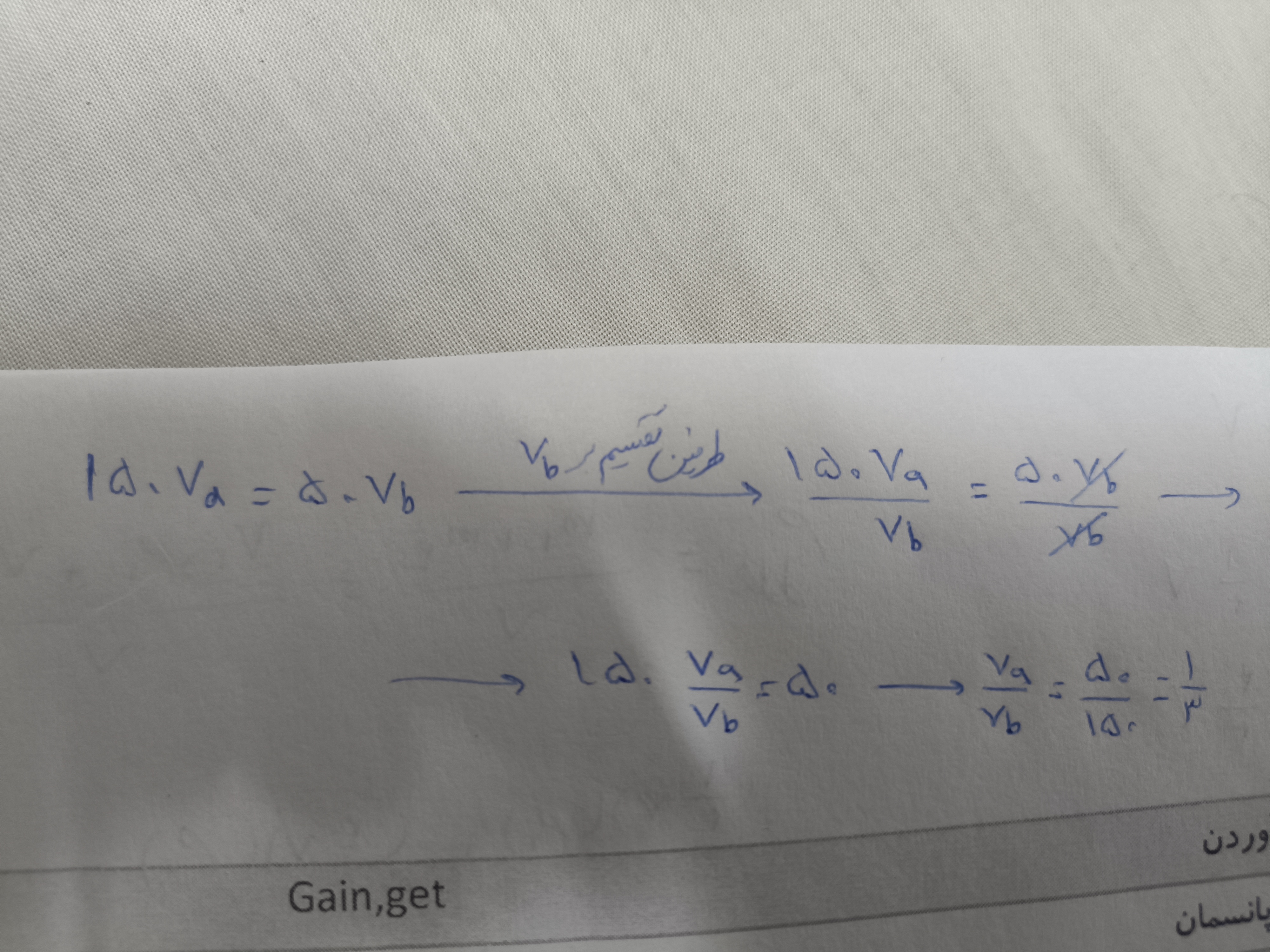 @سید محمد متین رشادی منظور اینکه وقتی 3Va = Vb شده چجوری Va یکسوم Vb هستش؟؟ مگه Va سه برابر Vb نیست؟؟ تو ویدئو گزینه یکسوم انتخاب شد..