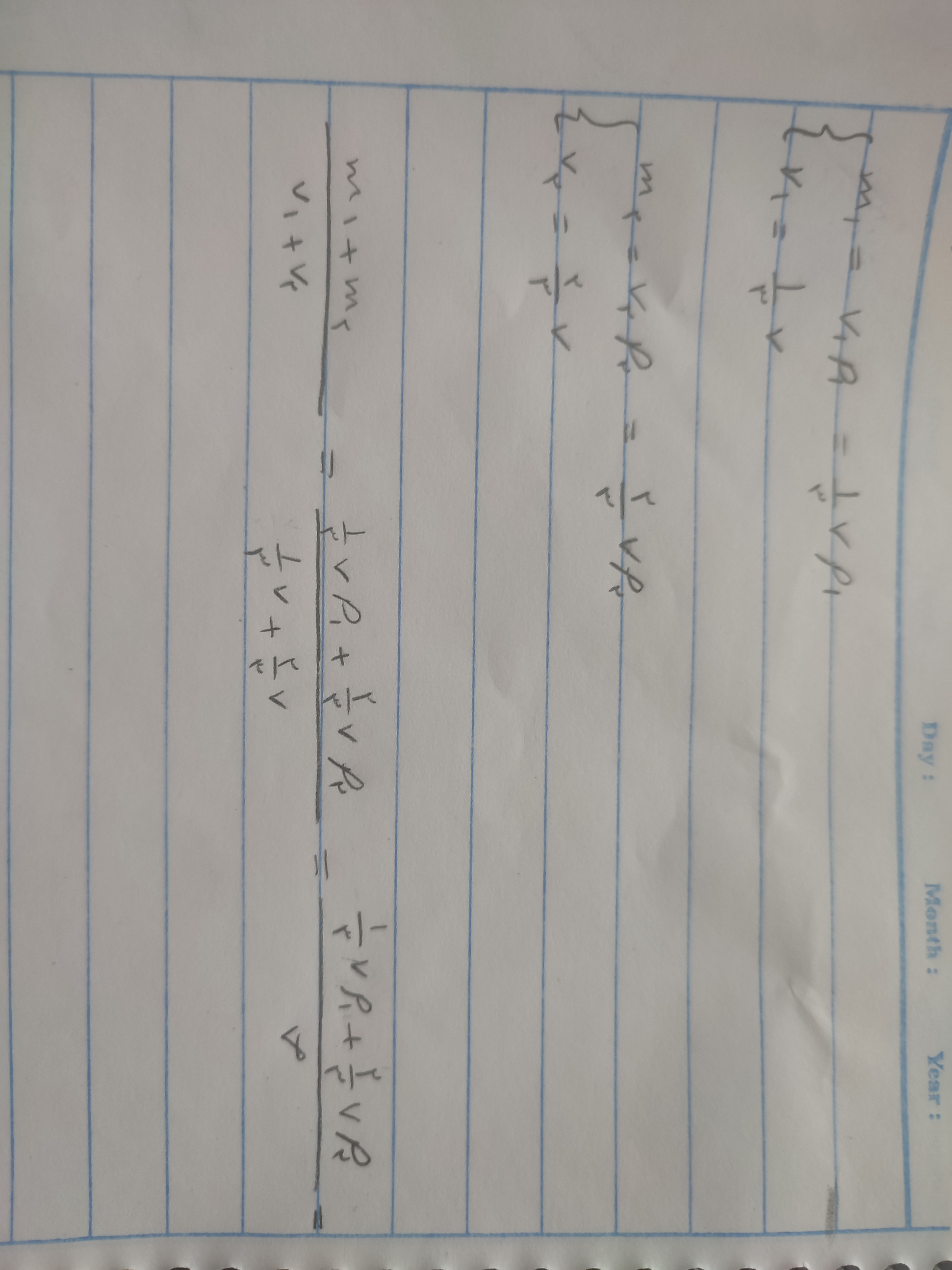 کافیه وی مخرج رو با صورت خط بزنی و اون چیزی که باقی میمونه میشه چگالی مخلوط که دقیقا همون فرمول استاده